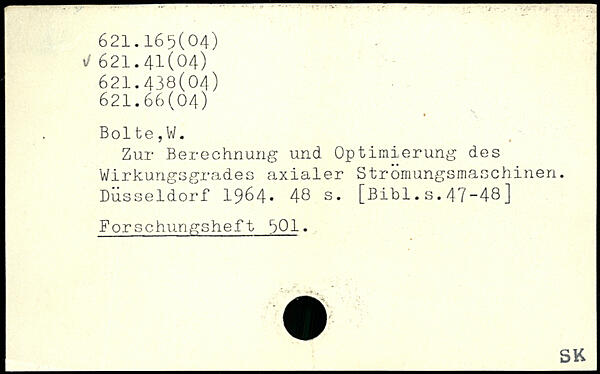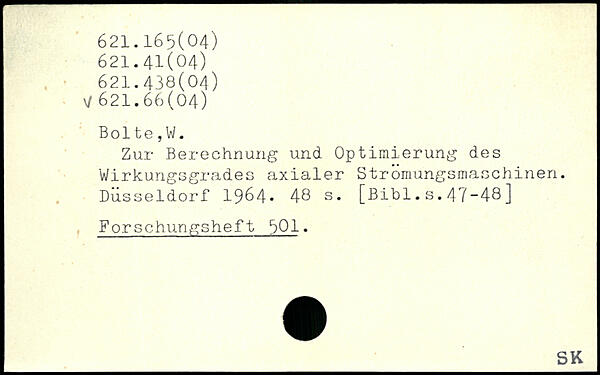 Zur Berechnung und. Optimierung des Wirkungsgrades axialer Strömungsmaschinen. Düsseldorf 1964