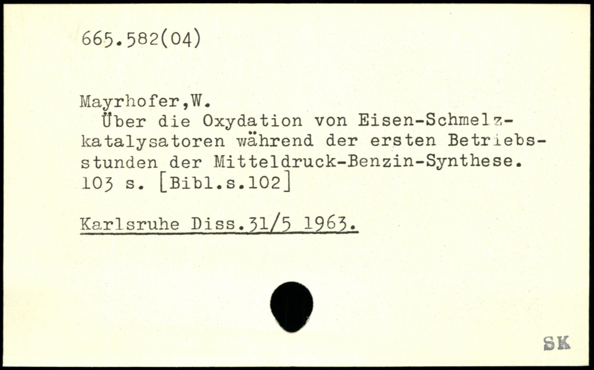 Über die Oxydation von Eisen-Schmel z-katalysatoren während der ersten Betriebs-stunden der Mitteldruck-Benzin-Synthese.