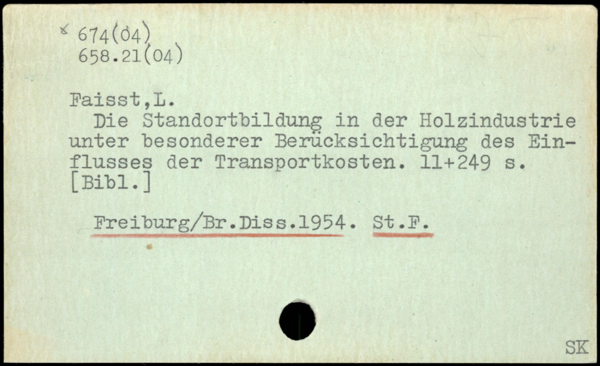 Die Standortbildung in der Holzindustrie unter besonderer Berücksichtigung des Einflusses der Transportkosten.