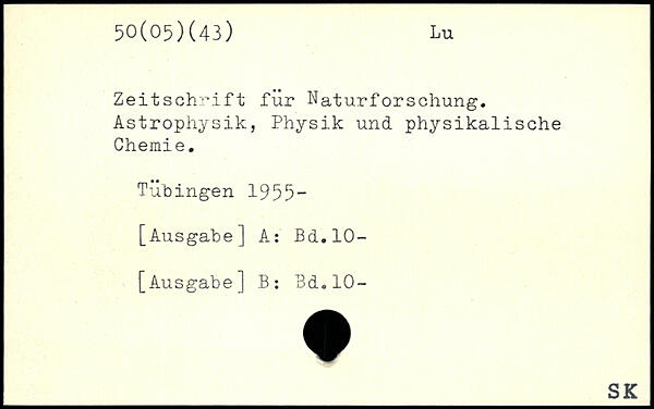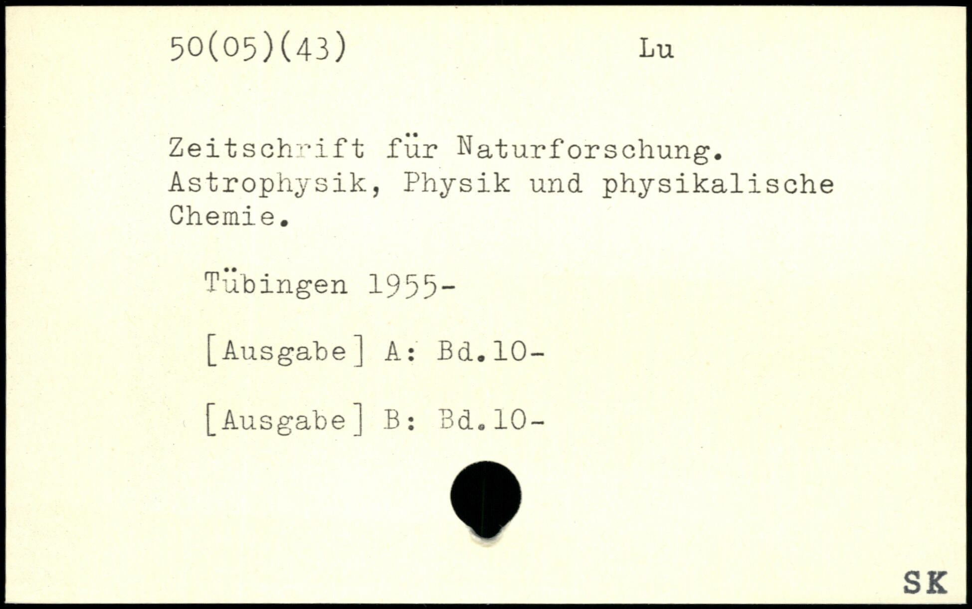 Zeitschrift für Naturforschung. Astrophysik, Physik und physikalische Chemie. Tübingen 1955-[Ausgäbe] A: