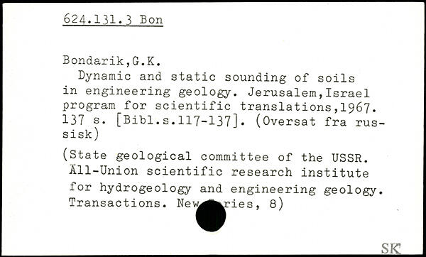 Dynamic and static sounding of soils in engineering geology. Jerusalem,Israel program for scientific translations,1967.