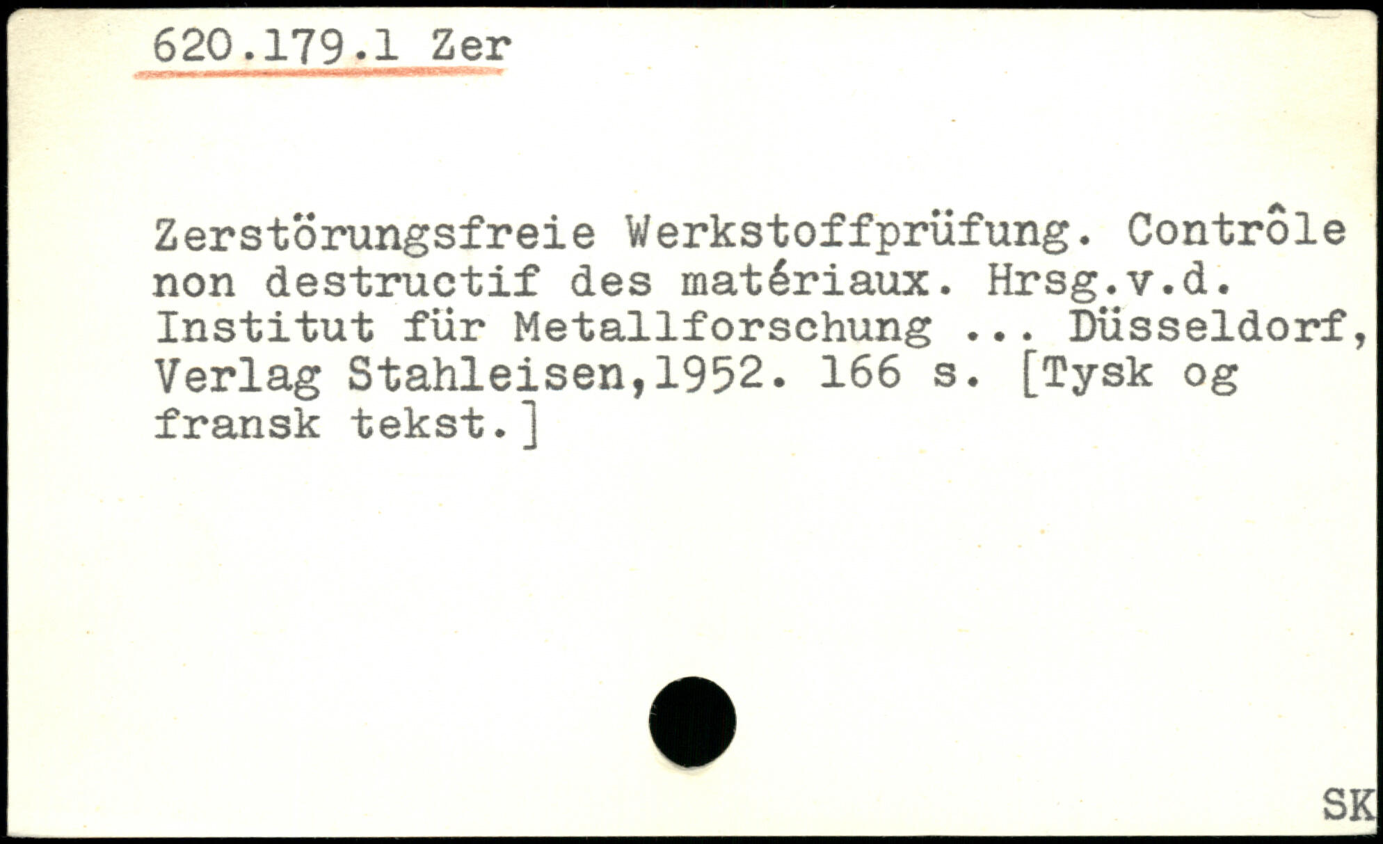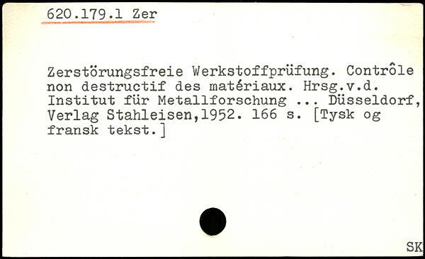 Zerstörungsfreie Werkstoffprüfung. Contrôle non destructif des matériaux. Hrsg.v.d. Institut für Metallforschung ...