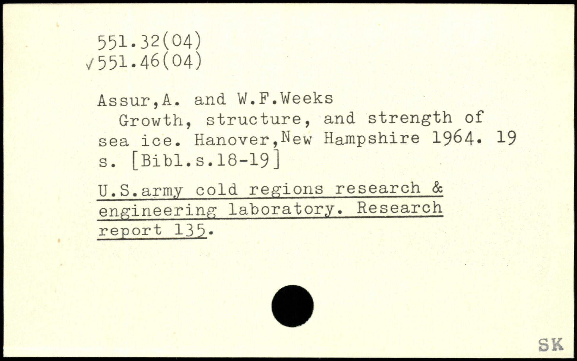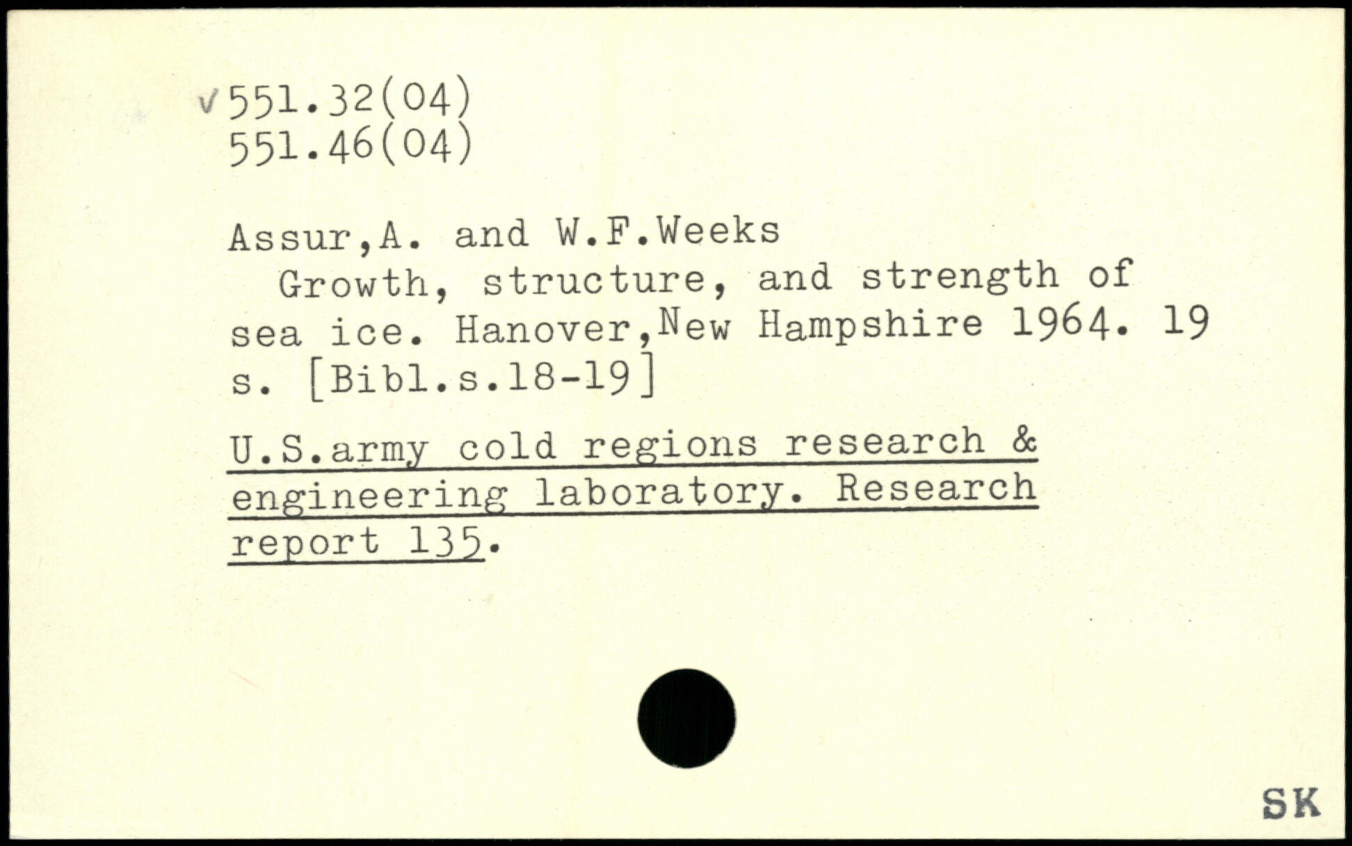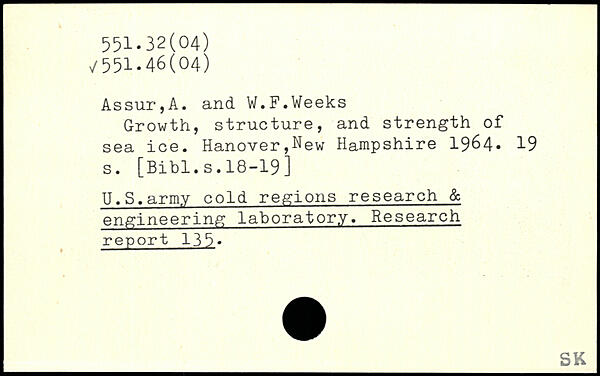 Growth, structure, and strength of sea ice. Hanover,New Hampshire 1964-