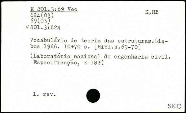 Vocabulario de teoria das estruturas.Lisboa 1966. IO+7O s.