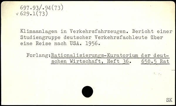 Klimaanlagen in Verkehrsfahrzeugen. Bericht einer Studiengruppe deutscher Verkehrsfachleute über eine Reise nach USA. 1956. Forlang:Rationalisierungs-Kuratorium der deutschen Wirtschaft, Heft 36. 658.5 Rat