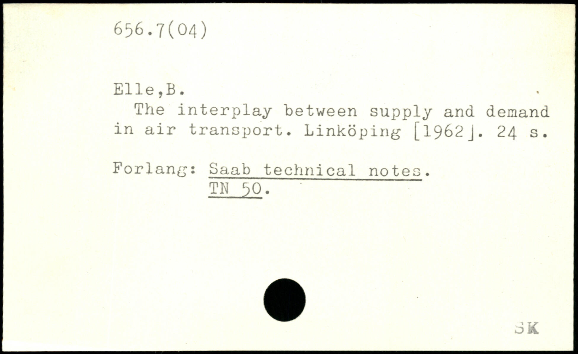 The interplay between supply and demand in air transport. Linköping [1962J.