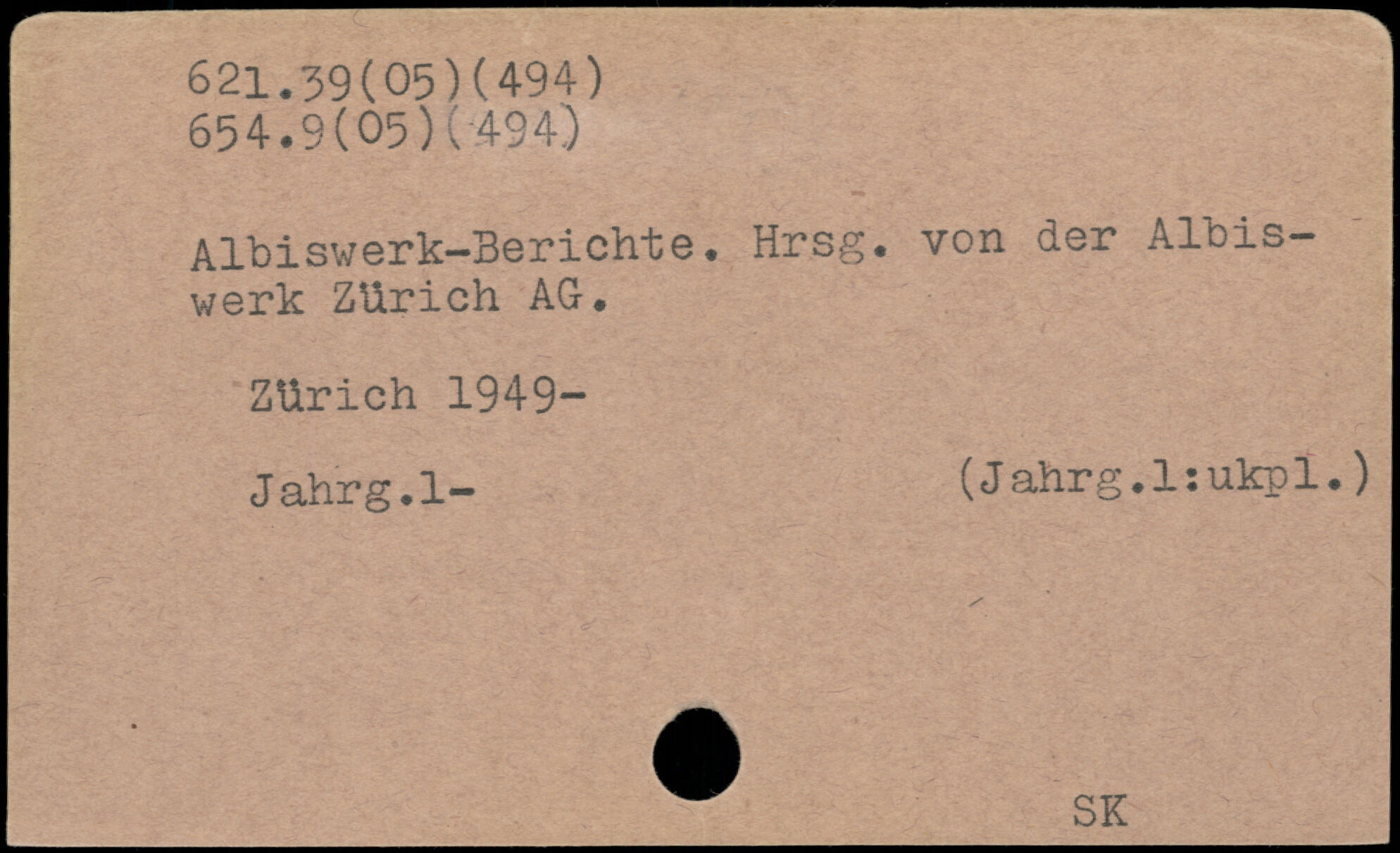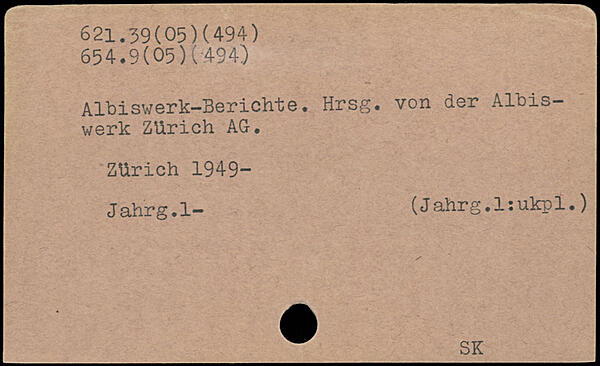 Albiswerk-Berichte. Hrsg, von der Albis-werk Zürich AG. Zürich 1949- Jahrg.l- (Jahrg.l:ukpl.)