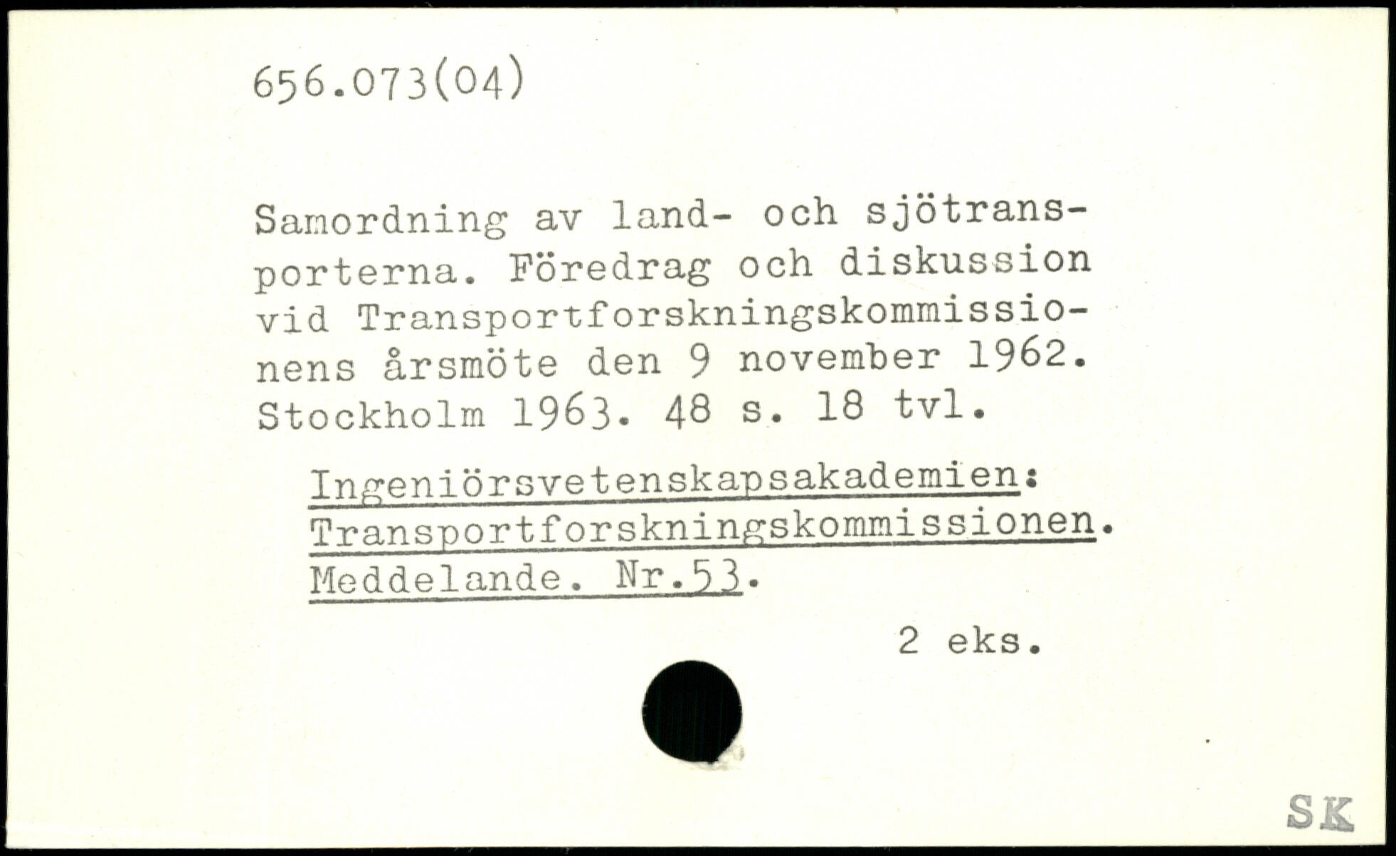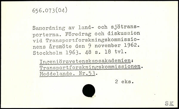 Samordning av land- och sjötransporterna. Föredrag och diskussion vid Transportforskningskommissio-nens årsmöte den 9 november 1962.