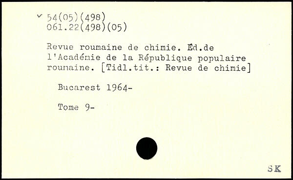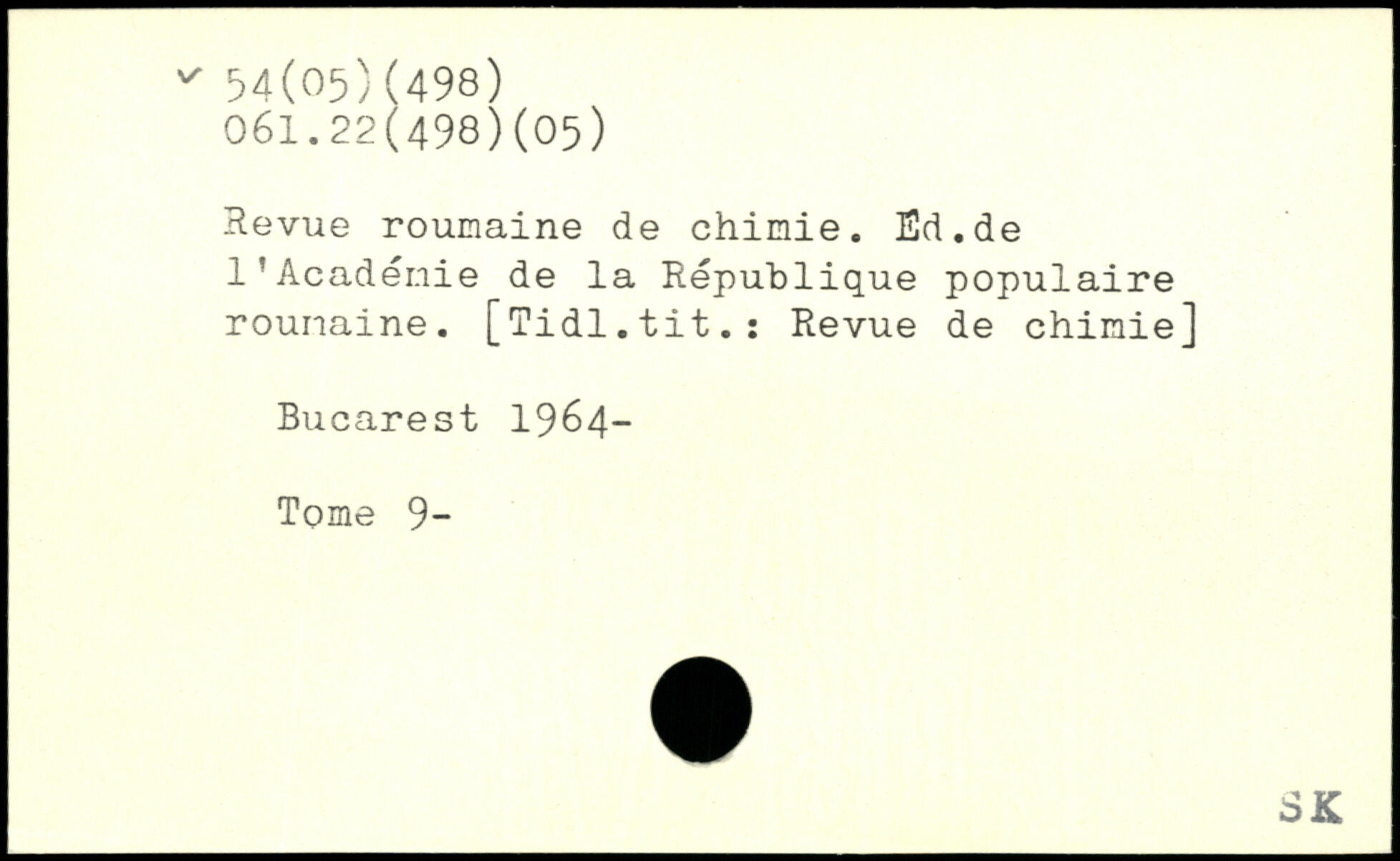 Revue roumaine de chimie. Ed.de l’Académie de la République populaire roumaine. [Tidl.tit.: Revue de chimie]