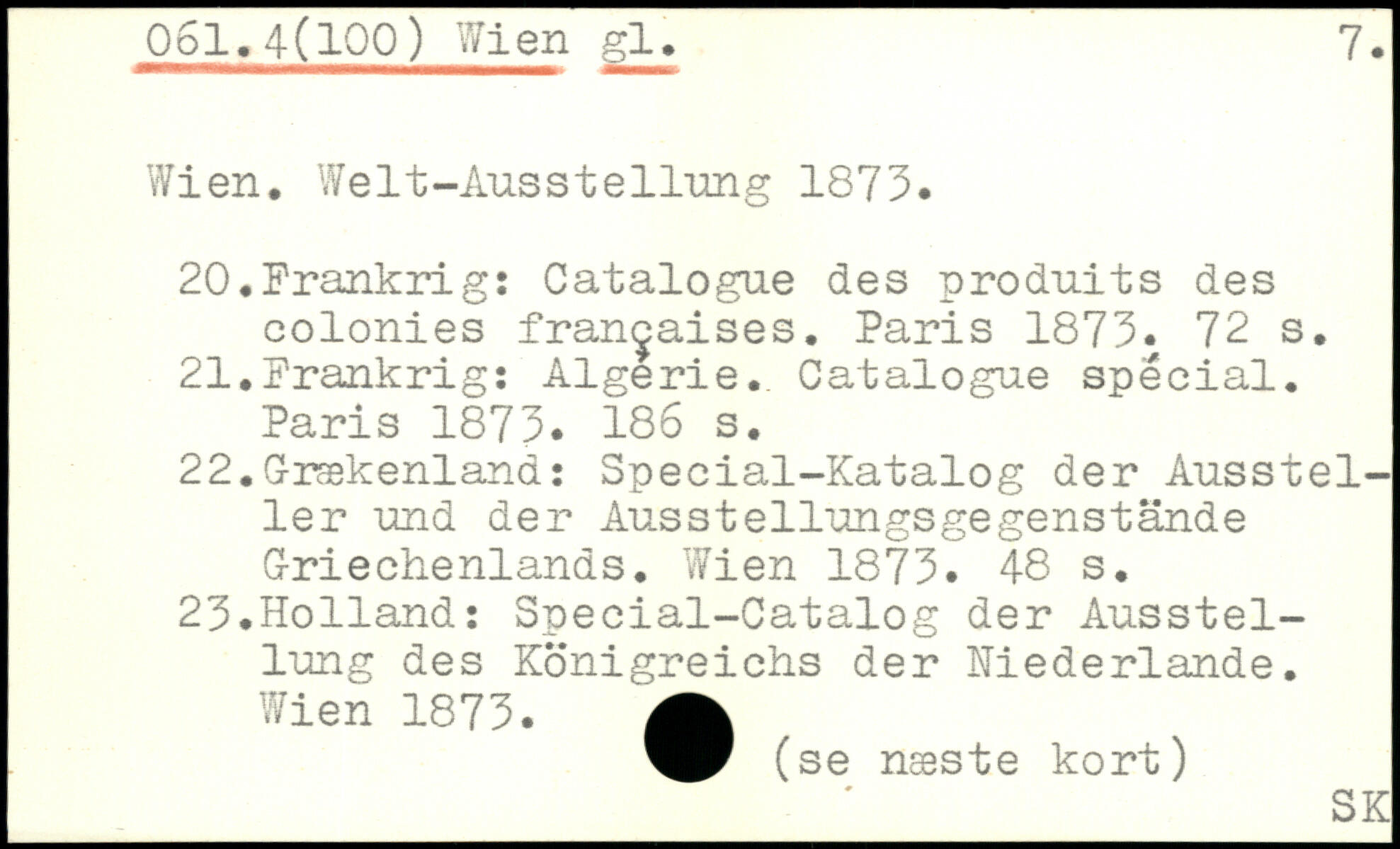 Wien. Welt-Ausstellung 1873. 20. Frankrig: Catalogue des produits des colonies françaises.