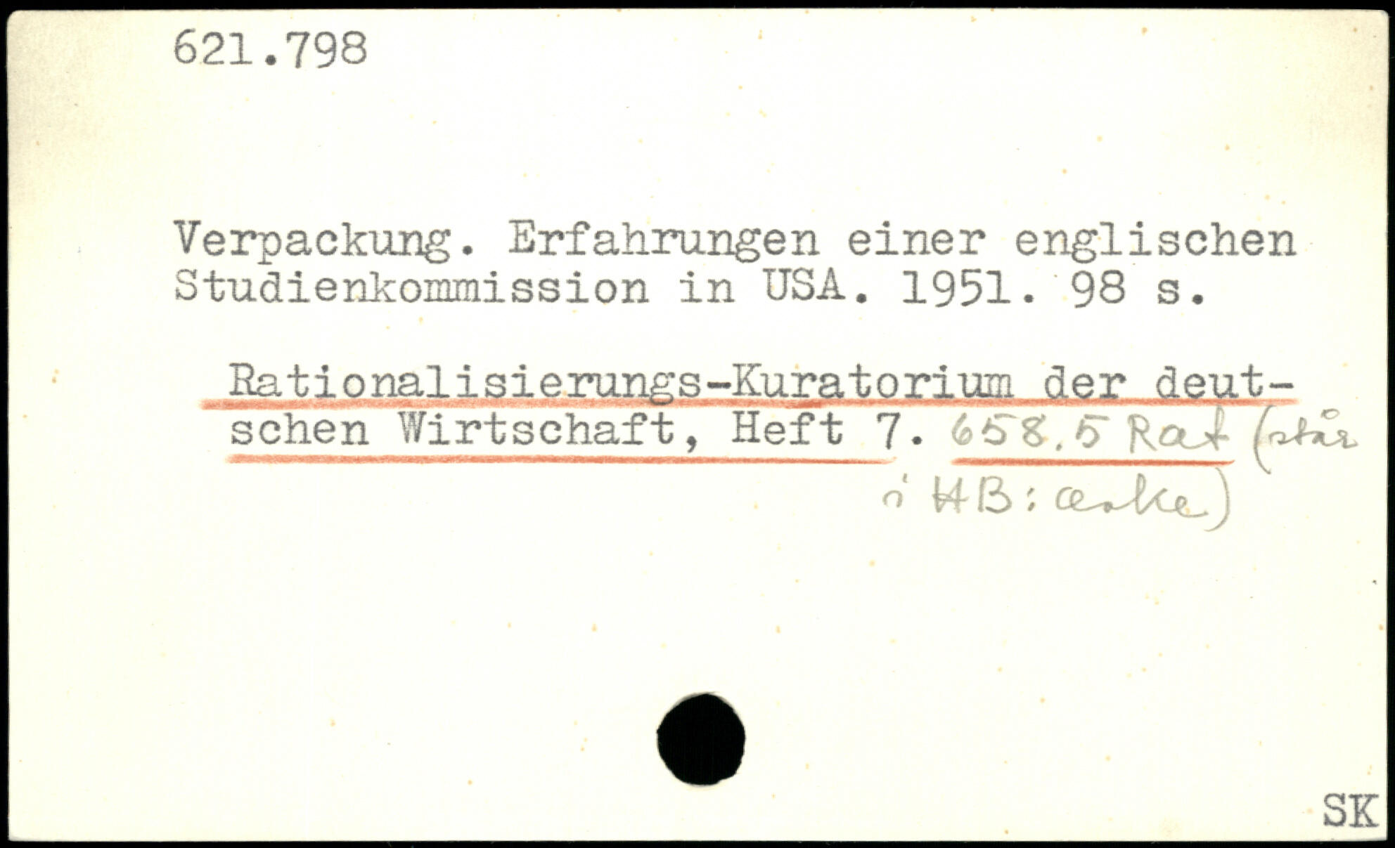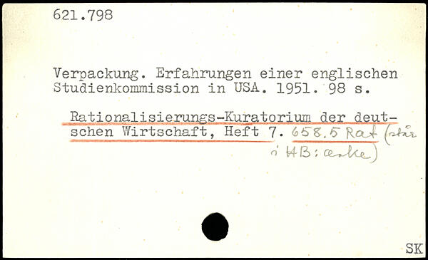 Verpackung. Erfahrungen einer englischen Studienkommission in USA. 1951.