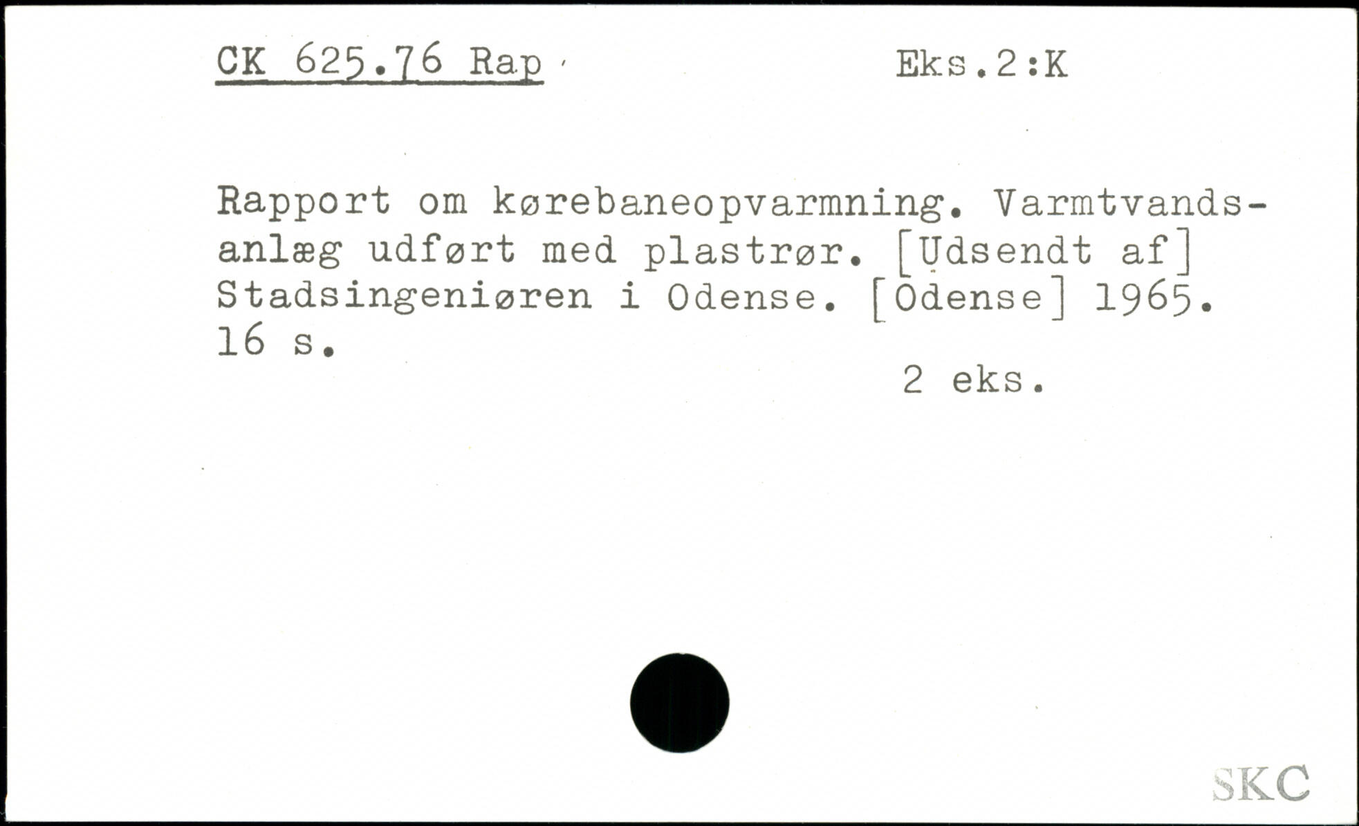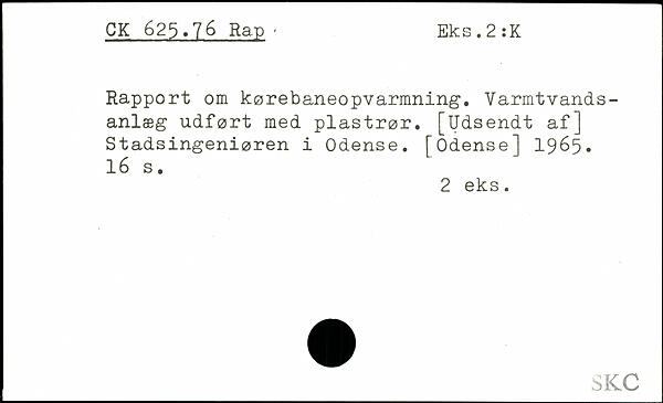Rapport om kørebaneopvarmning. Varmtvands-anlæg udført med plastrør.