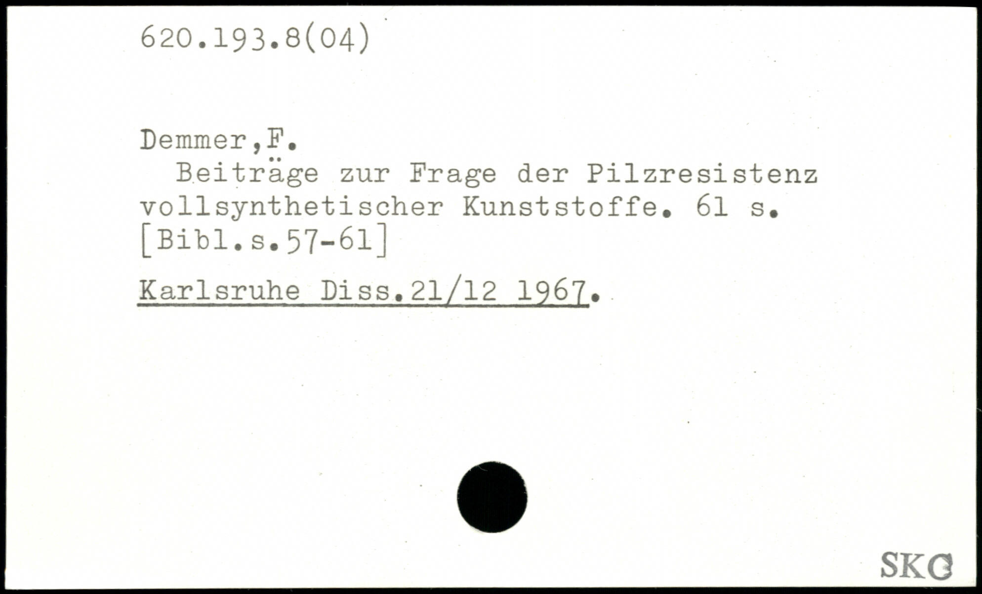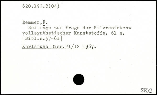 Beitrage zur Frage der Pilzresistenz vollsynthetischer Kunststoffe. 6l s.