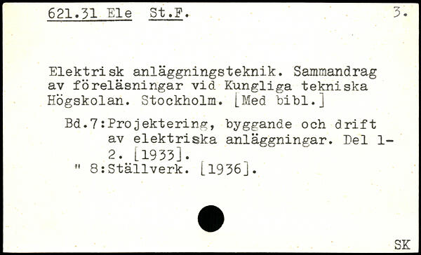 Elektrisk anläggningsteknik. Sammandrag av föreläsningar vid Kungliga tekniska Högskolan. Stockholm. [Med bibi.]