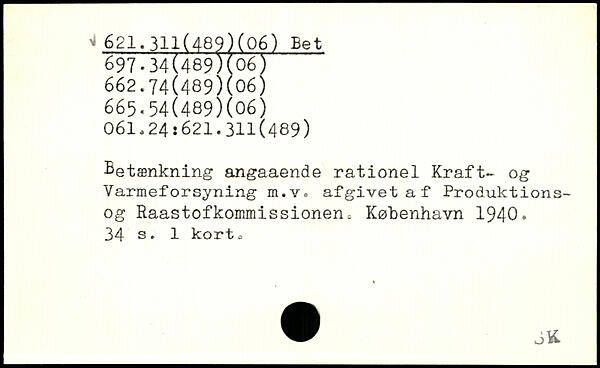 Betænkning angaaende rationel Kraft- og Varmeforsyning m.v. afgivet af Produktions-og Raastofkommissionen=
