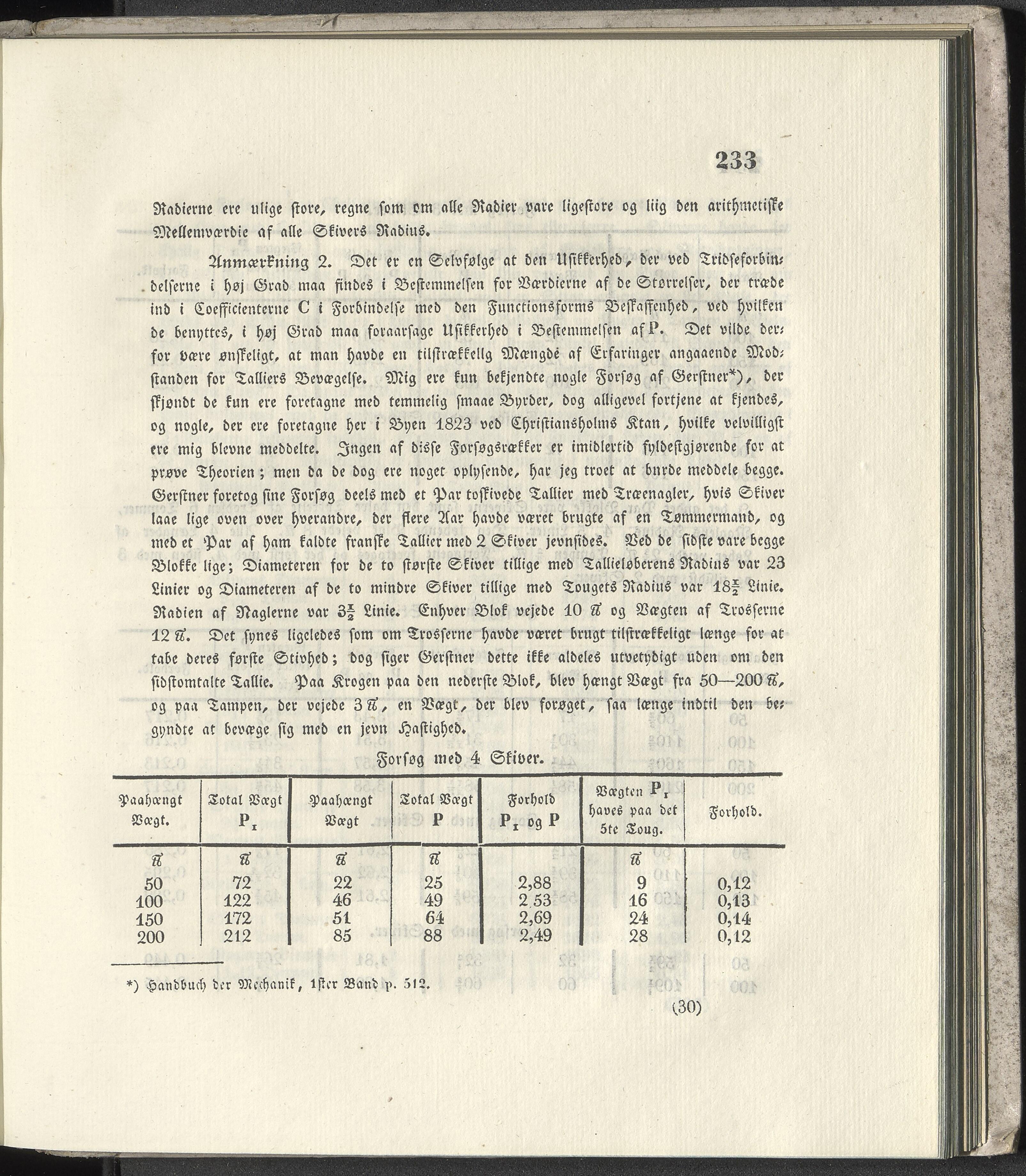 Gerstner foretog sine Forssg deels med et Par tostivede Tallier med Træenagler, hvis Skiver