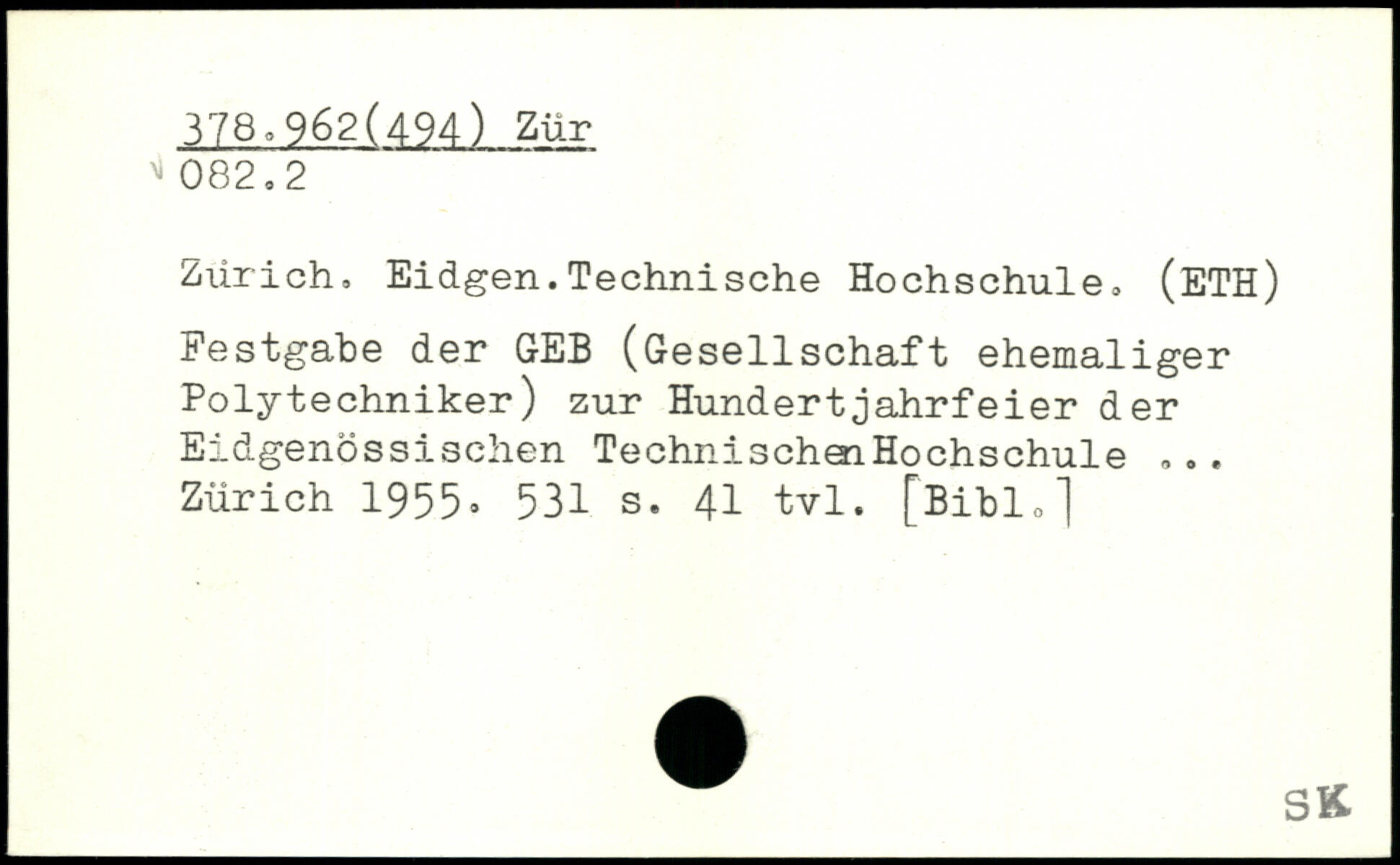 Zürich, Eidgen.Technische Hochschule, (ETH) Festgabe der GEB (Gesellschaft ehemaliger Polytechniker) zur Hundertjahrfeier der Eidgenössischen Technisehen Hochschule ... Zürich 1955
