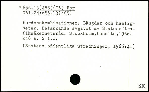 Fordonskombinationer. Längder och hastigheter. Betänkande avgivet av Statens trafiksäkerhetsråd.