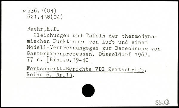 Gleichungen und Tafeln der thermodynamischen Funktionen von Luft und einem Modell-Verbrennungsgas zur Berechnung von Gasturbinenprczessen. Düsseldorf 1967.