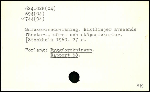Snickeriredovisningc Riktlinjer avseende fönster-, dörr- och skåpsnickerier