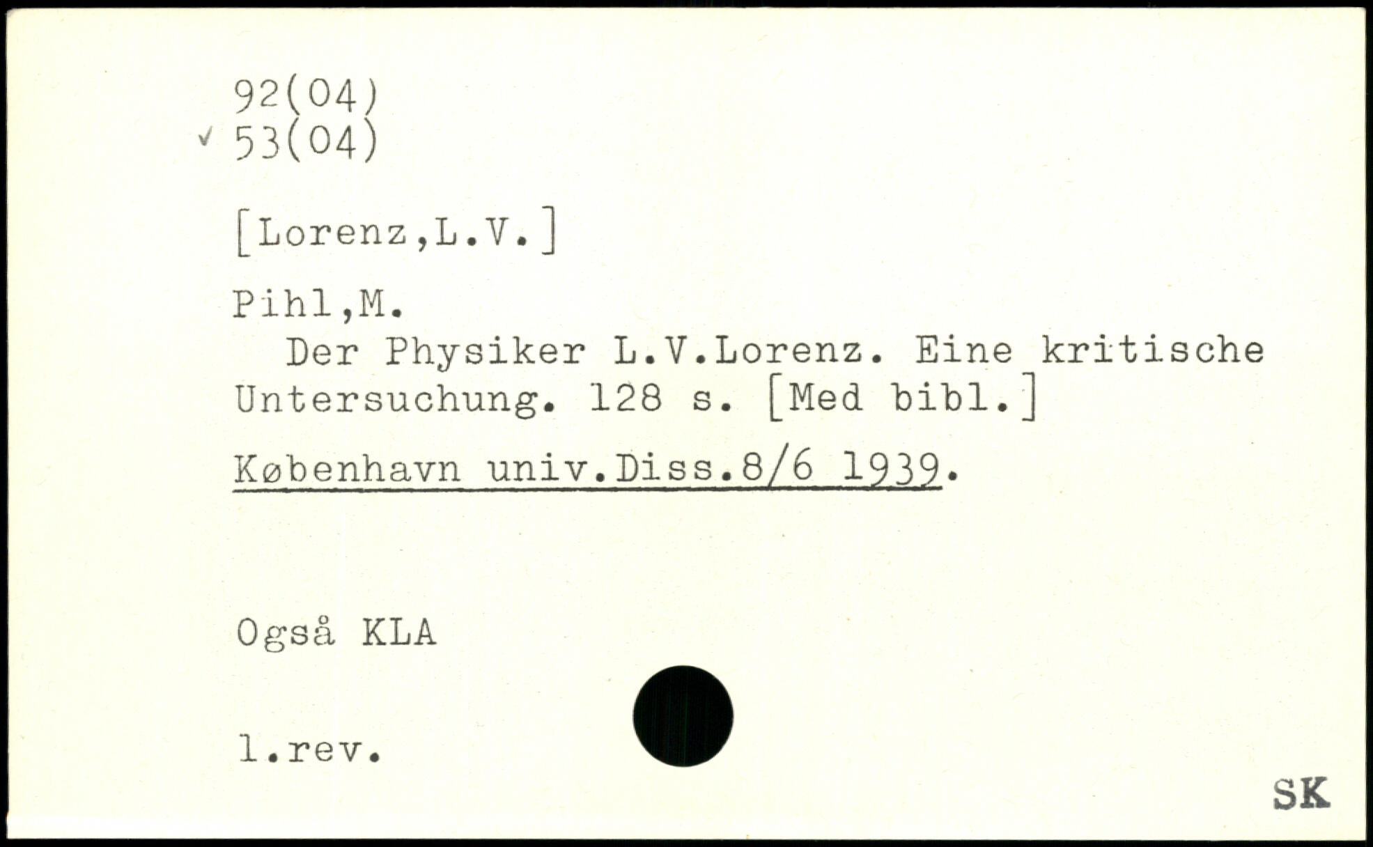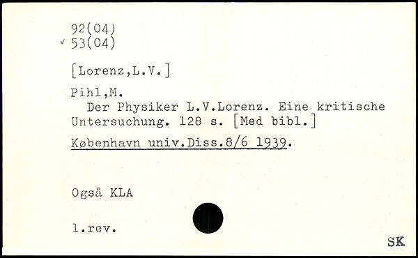 Der Physiker L.V.Lorenz. Eine kritische Untersuchung.