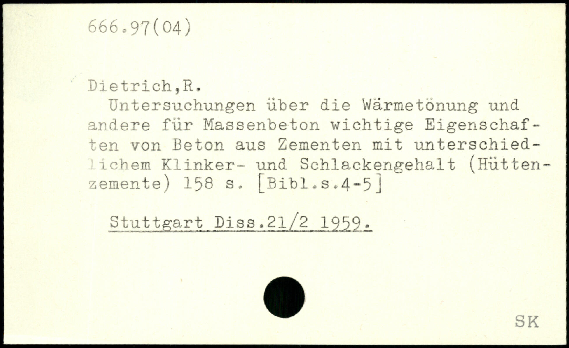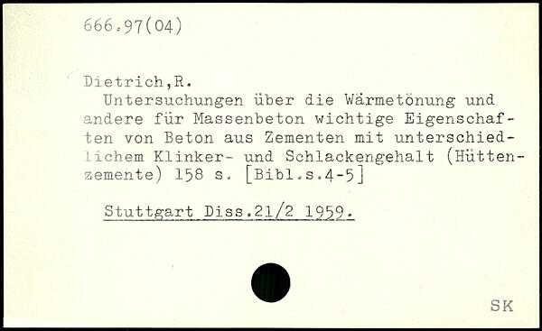 Untersuchungen über die Wärmetönung und andere für Massenbeton wichtige Eigenschaften von Beton aus Zementen mit unterschiedlichem Klinker- und Schlackengehalt (Hüttenzemente)