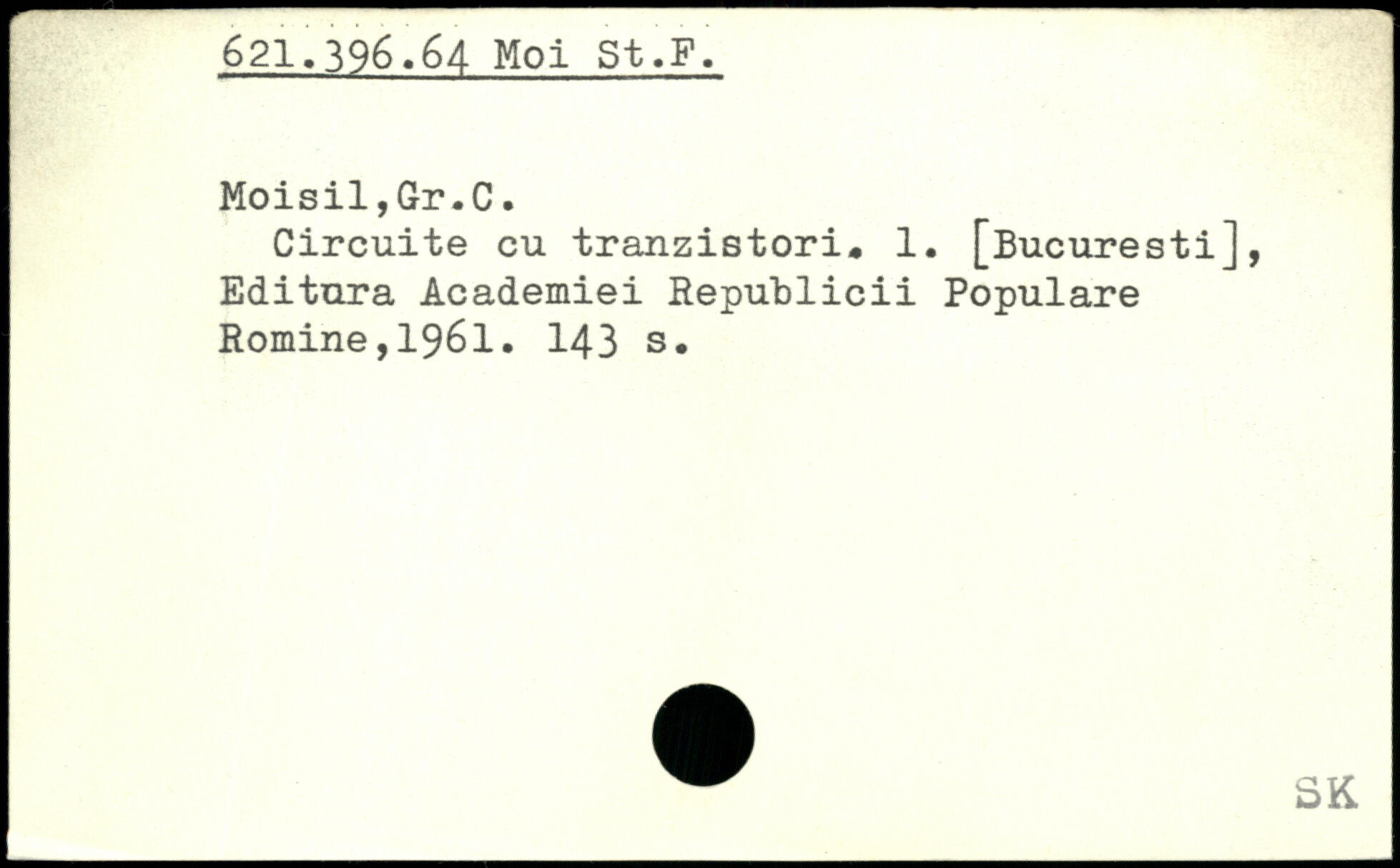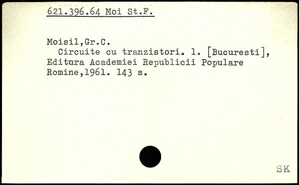 Moisil,Gr.C. Circuite eu tranzistori. 1. [Bucuresti], Editura Academiei Republicii Populäre Romine,1961.