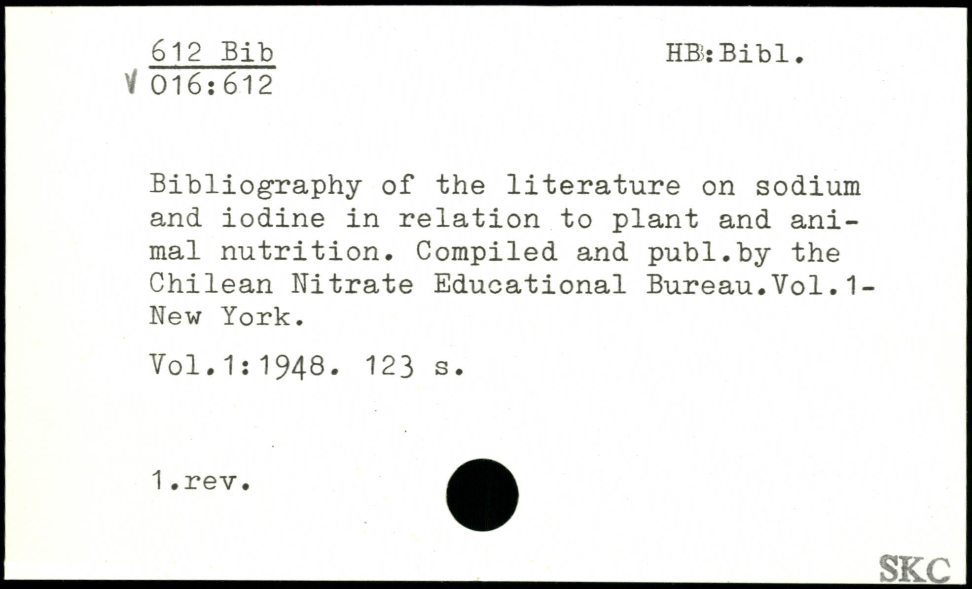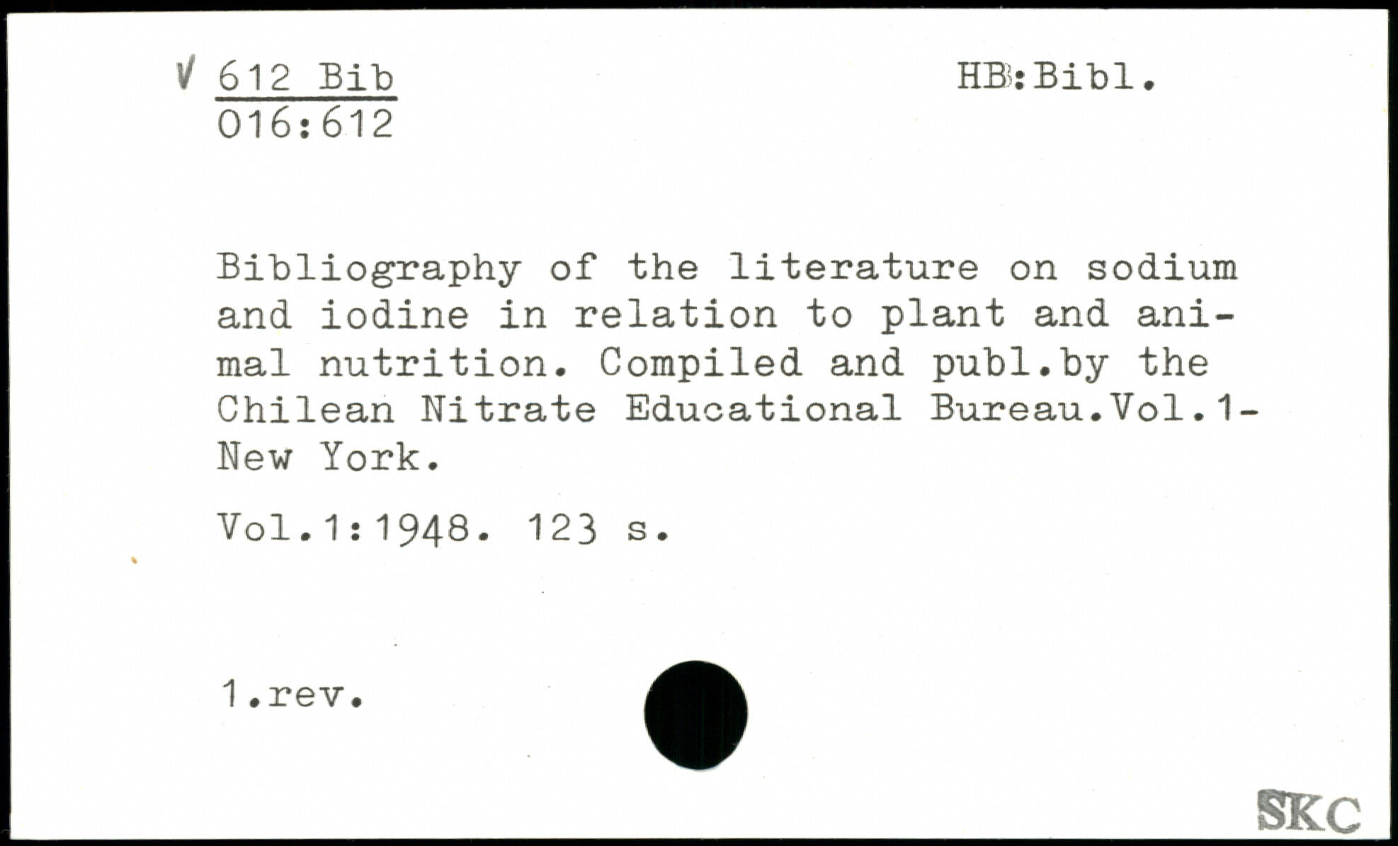 Bibliography of the literature on sodium and iodine in relation to plant and animal nutrition. Compiled and publ.by the Chilean Nitrate Educational Bureau.