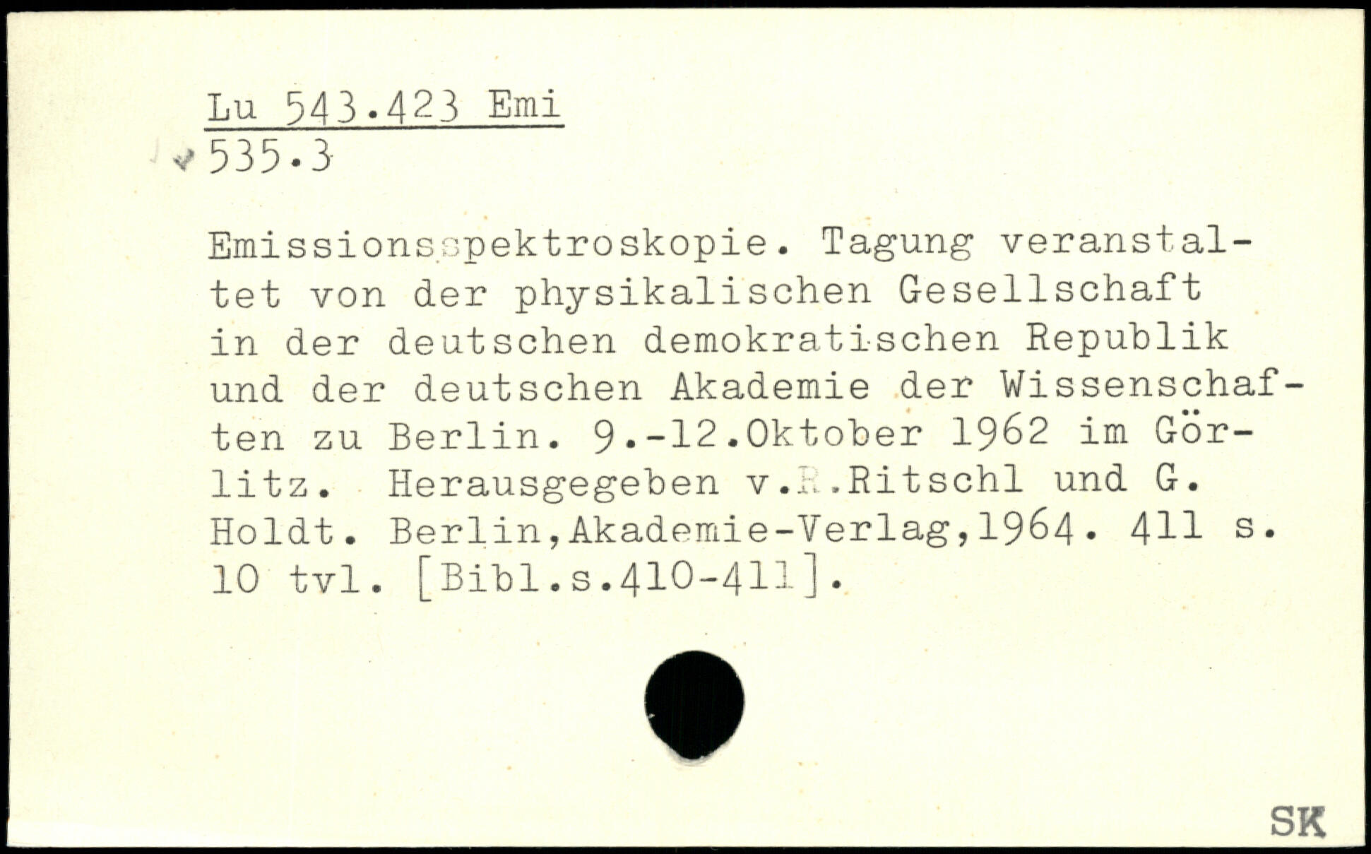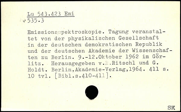 Emissionsspektroskopie. Tagung veranstaltet von der physikalischen Gesellschaft in der deutschen demokratischen Republik und der deutschen Akademie der Wissenschaften zu Berlin. 9.-12.Oktober 1^62 im Görlitz. Herausgegeben v.R.Ritschl und G. Holdt.