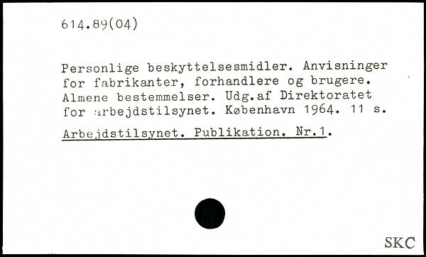 Personlige beskyttelsesmidler. Anvisninger for fabrikanter, forhandlere og brugere. Almene bestemmelser. Udg.af Direktoratet for arbejdstilsynet.