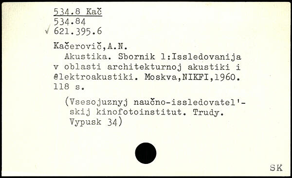 Akustika. Sbornik 1:Issledovanija v oblasti architekturnoj akustiki i Slektroakustiki.