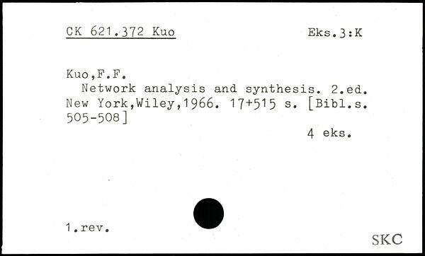 Network analysis and synthesis. 2,ed.