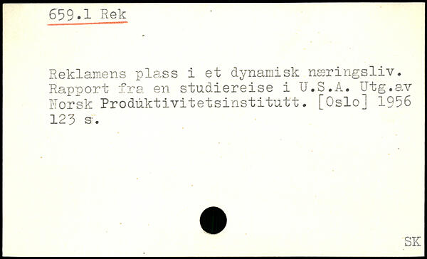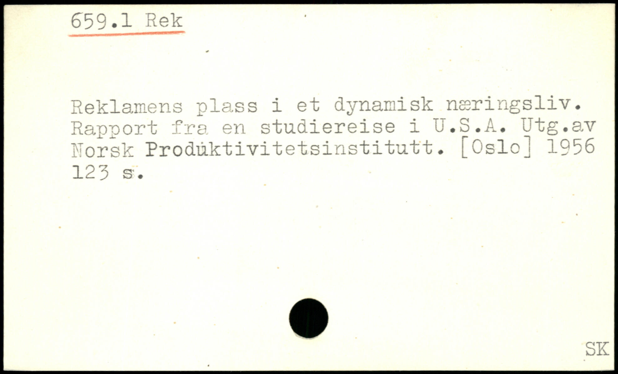 Reklamens plass i et dynamisk næringsliv. Rapport fra en studiereise i U.S.A. Utg.av ilorsk Produktivitetsinstitutt. [Oslo] 1956