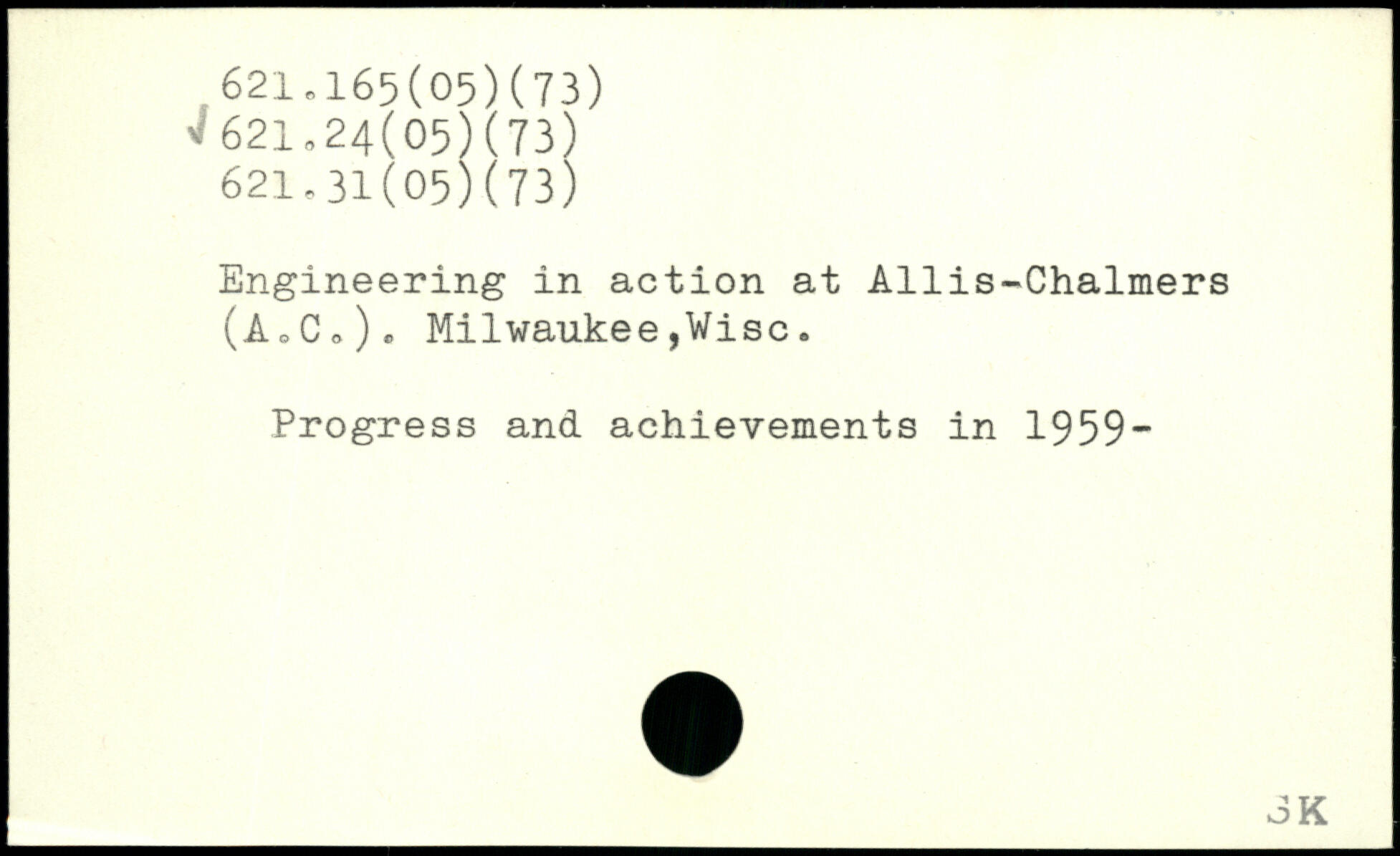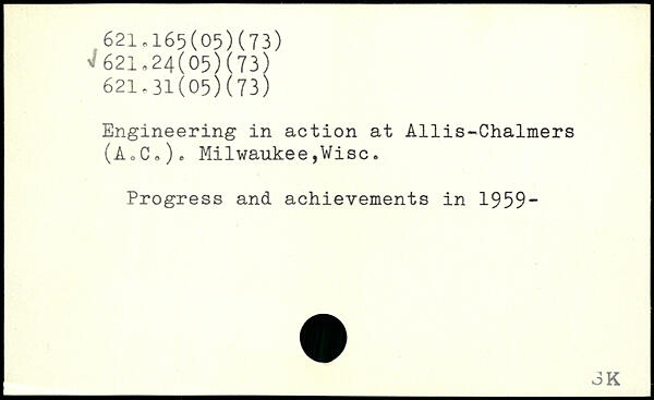 Engineering in action at Allis-Chalmers (AoCo). Milwaukee,Vise. Progress and achievements in 1959“ JK