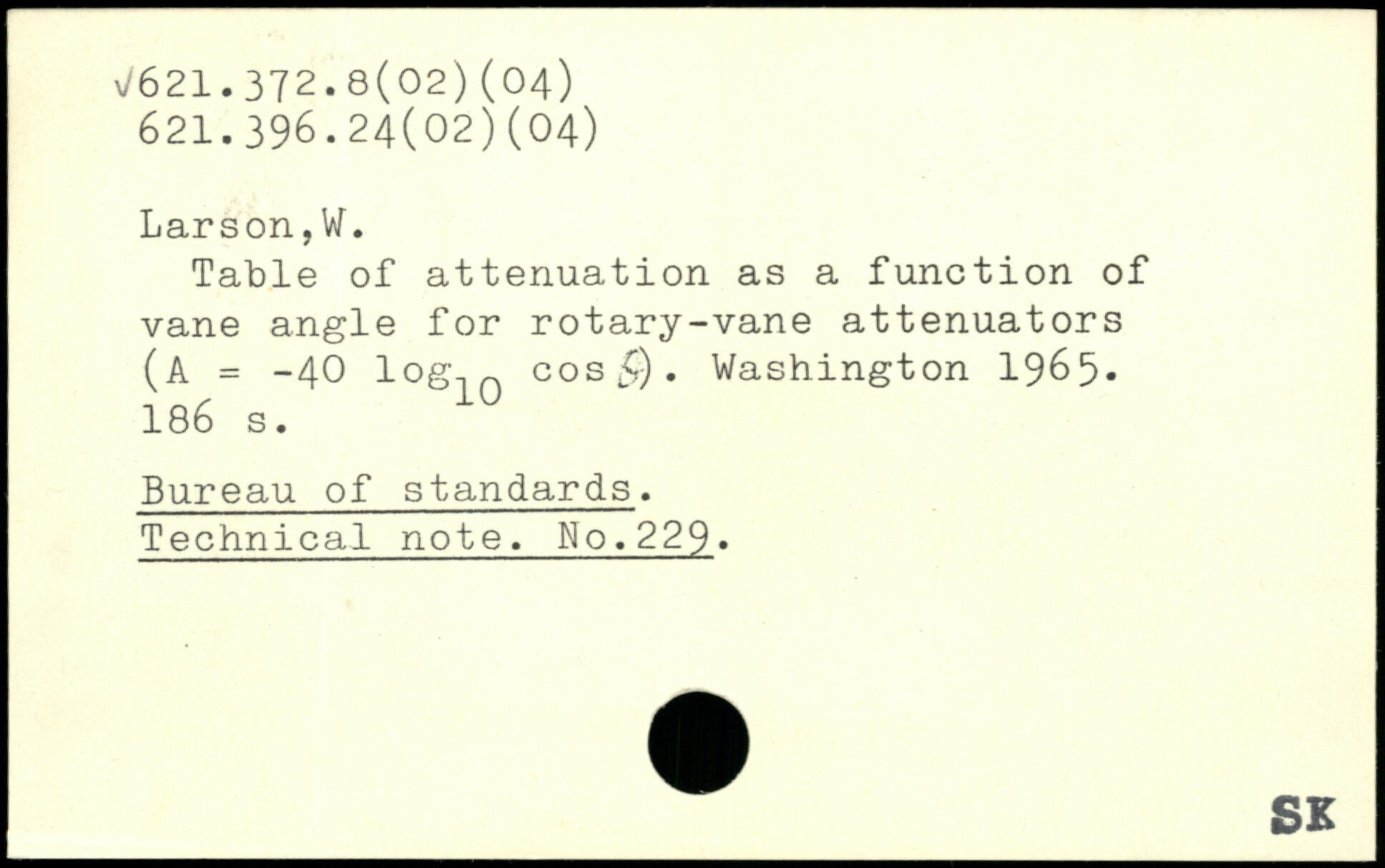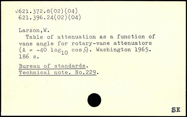 Table of attenuation as a function of vane angle for rotary-vane attenuators (A = -40 log.,n cos £).