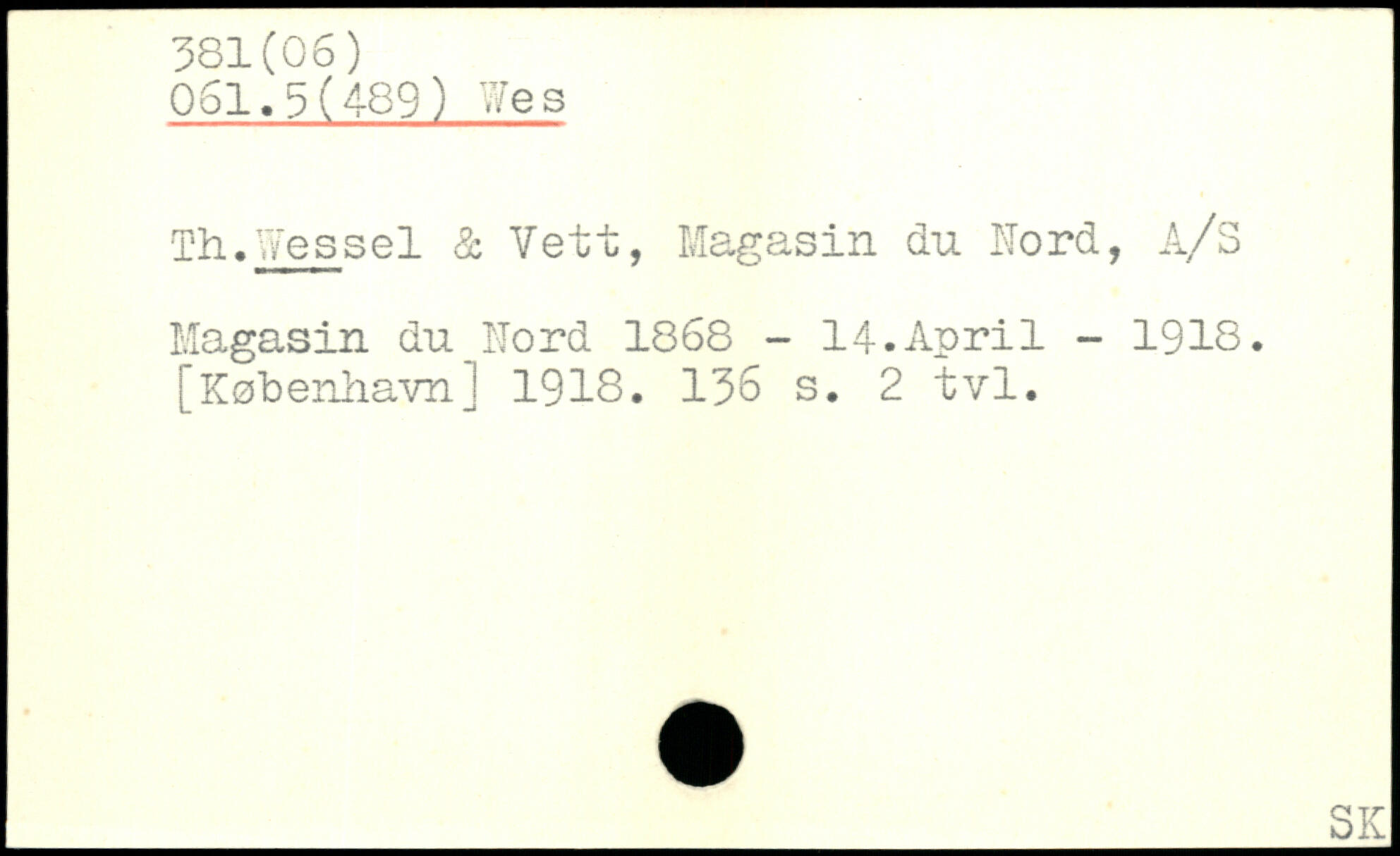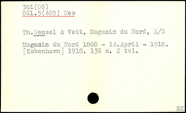 Th.Wessel & Vett, Magasin du Nord, A/S Magasin du Nord 1868 - 14.April - 1918. [K0benhavn] 1918.