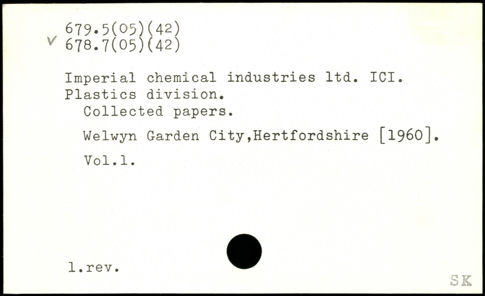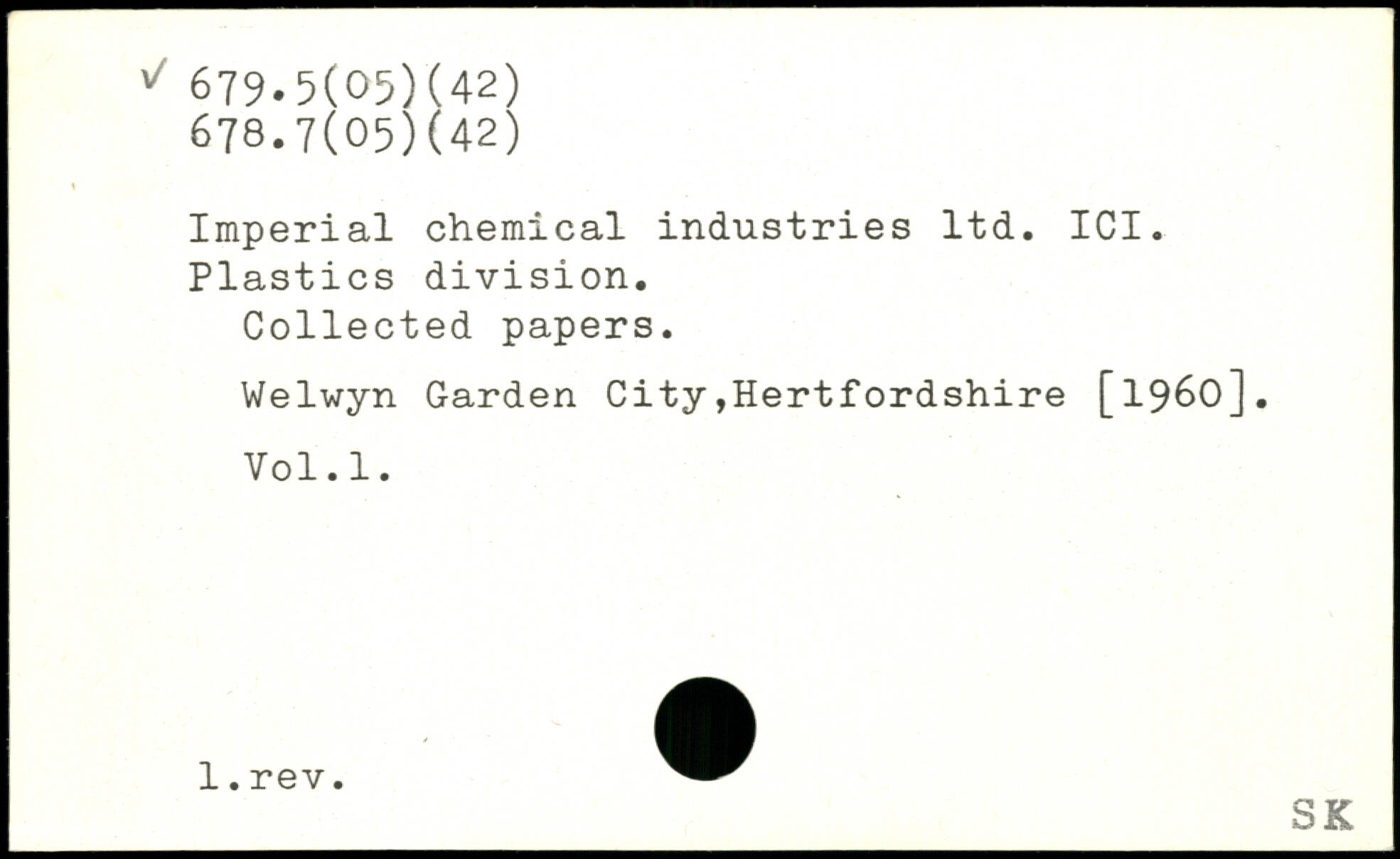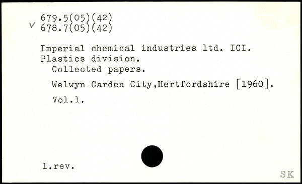Imperial chemical industries ltd. ICI. Plastics division. Collected papers. Welwyn Garden City,Hertfordshire [1960]