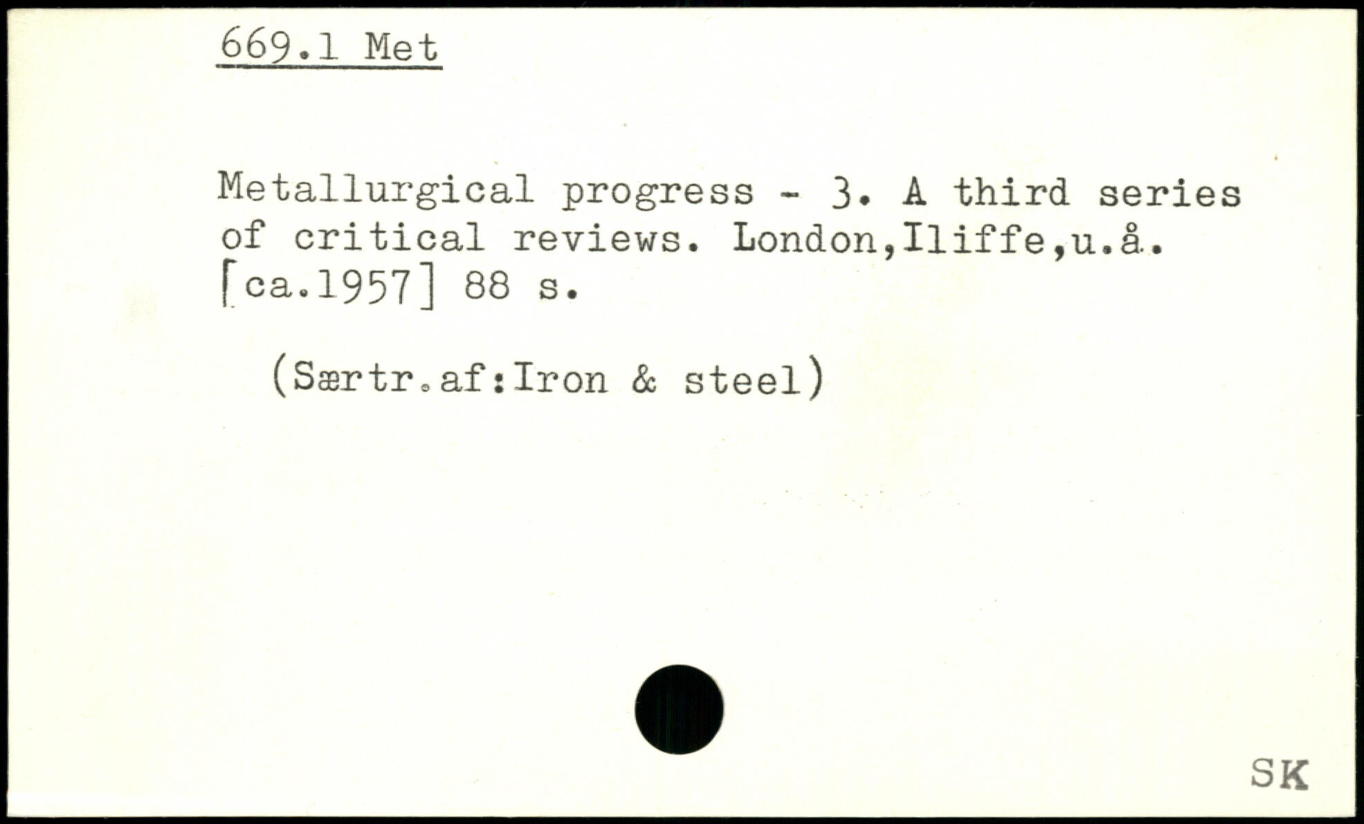 Metallurgical progress - 3. A third series of critical reviews. London,IIiffe,u.å. Tea.1957]