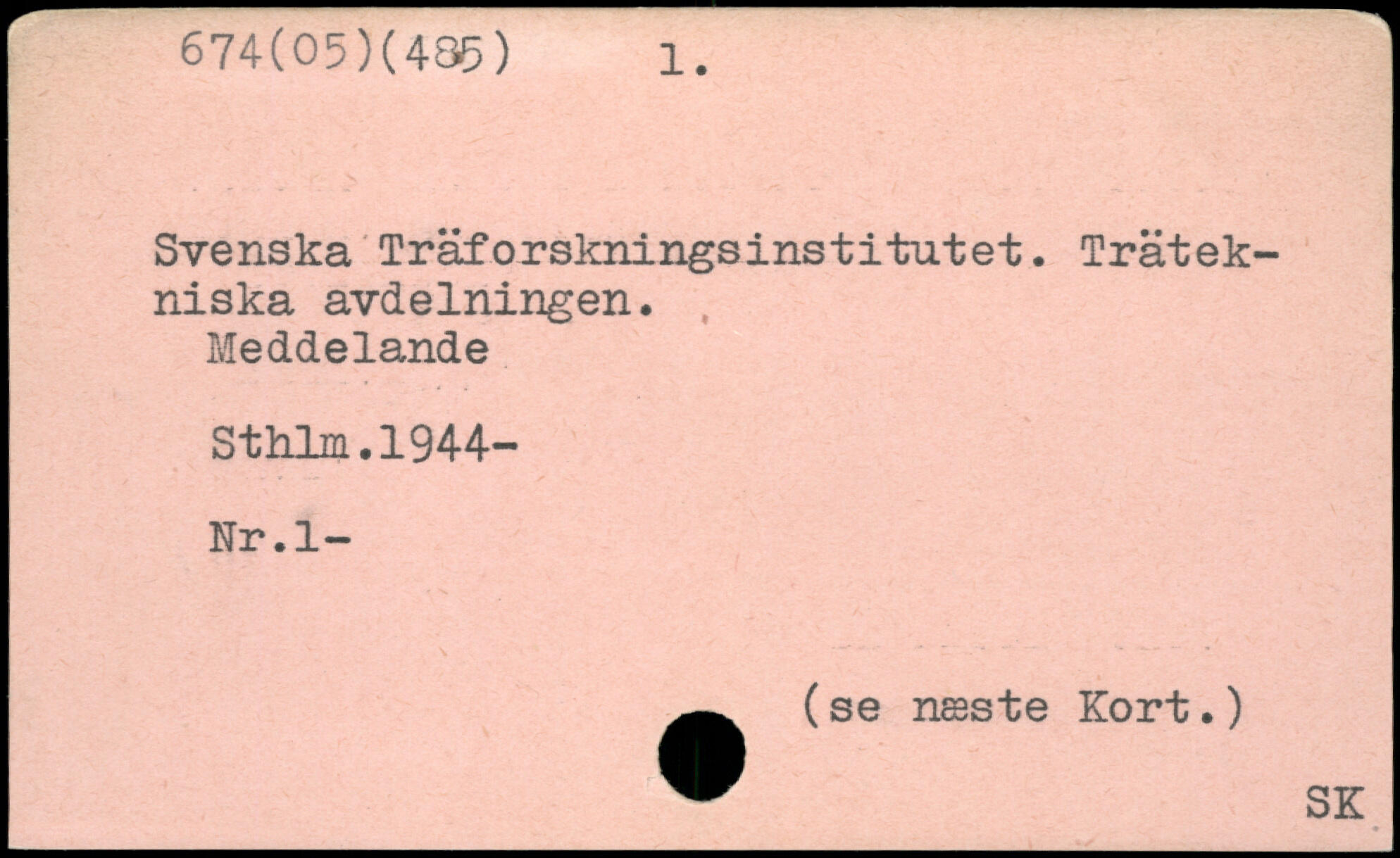Svenska Träforskningsinstitutet. Trätekniska avdelningen. Meddelande Sthlm.1944- Nr.l-