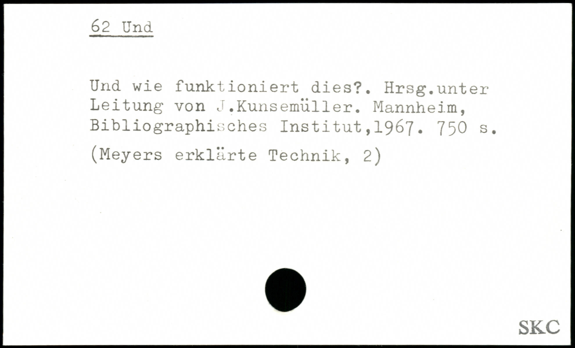 Und wie funktioniert dies?. Hrsg.unter Leitung von J.Kunsemüller.