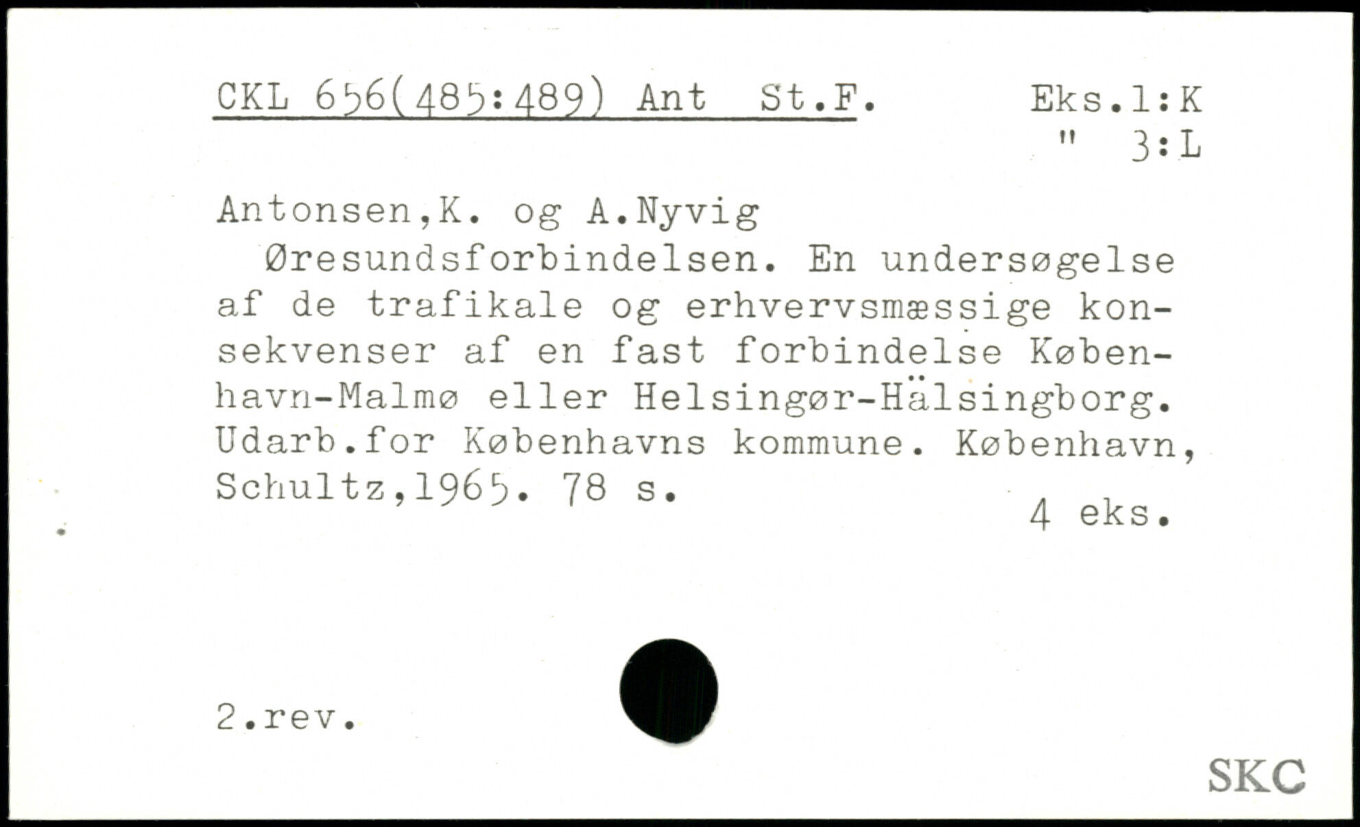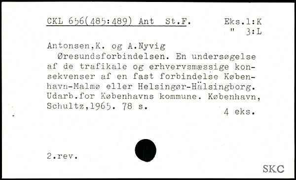Øresundsforbindelsen. En undersøgelse af de trafikale og erhvervsmæssige konsekvenser af en fast forbindelse Køben-havn-Malmø eller Helsingør-Halsingborg. Udarb.for Københavns kommune. København, Schultz,196^.