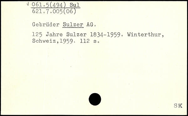 Gebrüder Sulzer AG0 125 Jahre Sulzer 1834-1959