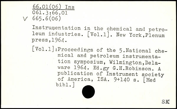 Instrumentation in the chemical and petro- ■ leum industries. [Vol.l]