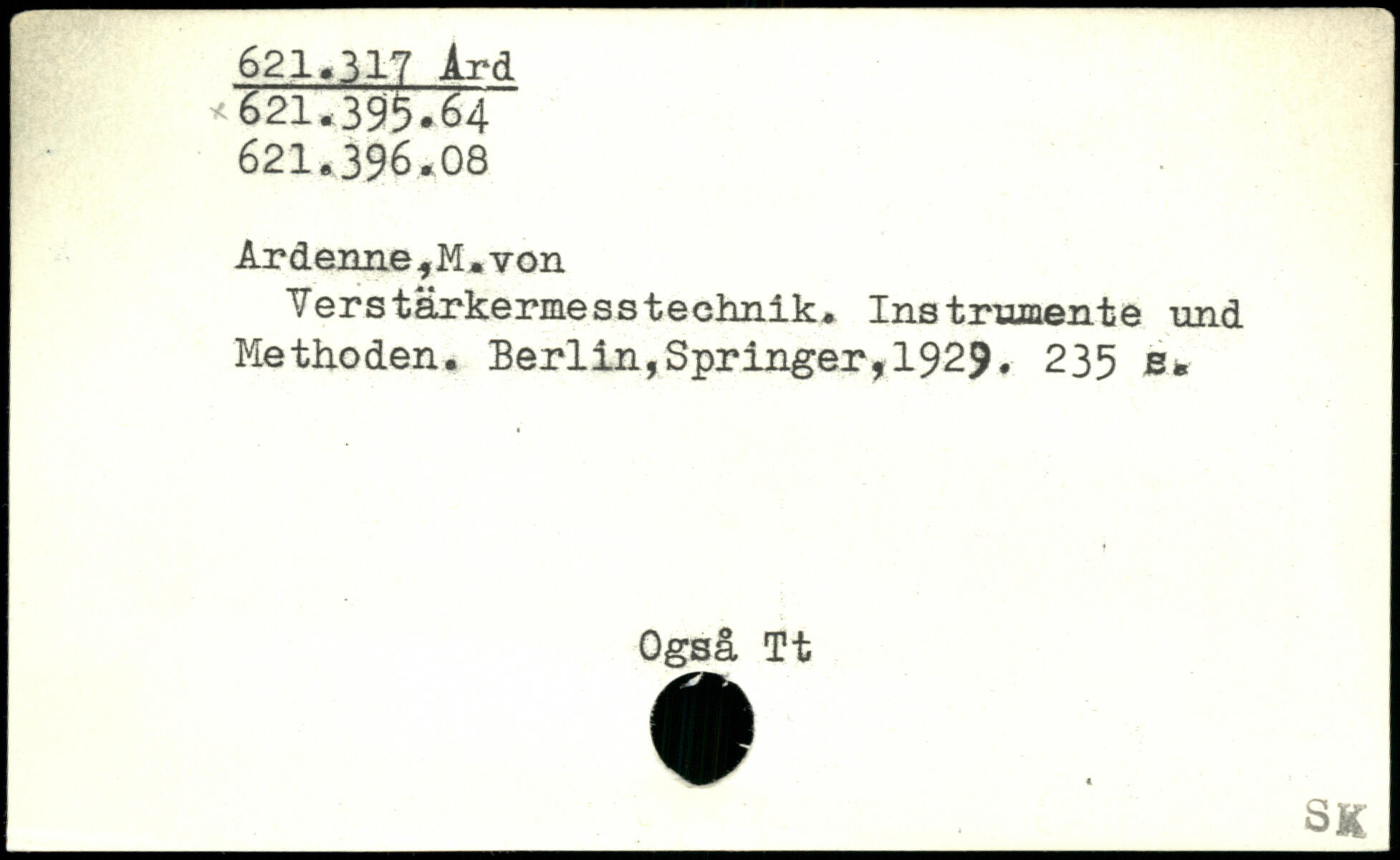Ar denne , M. von Yerstärkermesstechnik. Instrumente und Methoden.