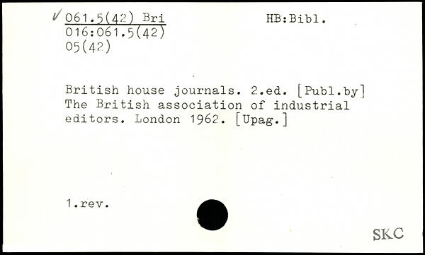UDK: 016:061.5(42), 05(42), 061.5(42) Bri