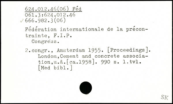 Fédération internationale de la précontrainte, F.I.P. Congress. 2.congr., Amsterdam 1955, [Proceedings], Londom,Cement and concrete association,u.â. [ ca. 1958].