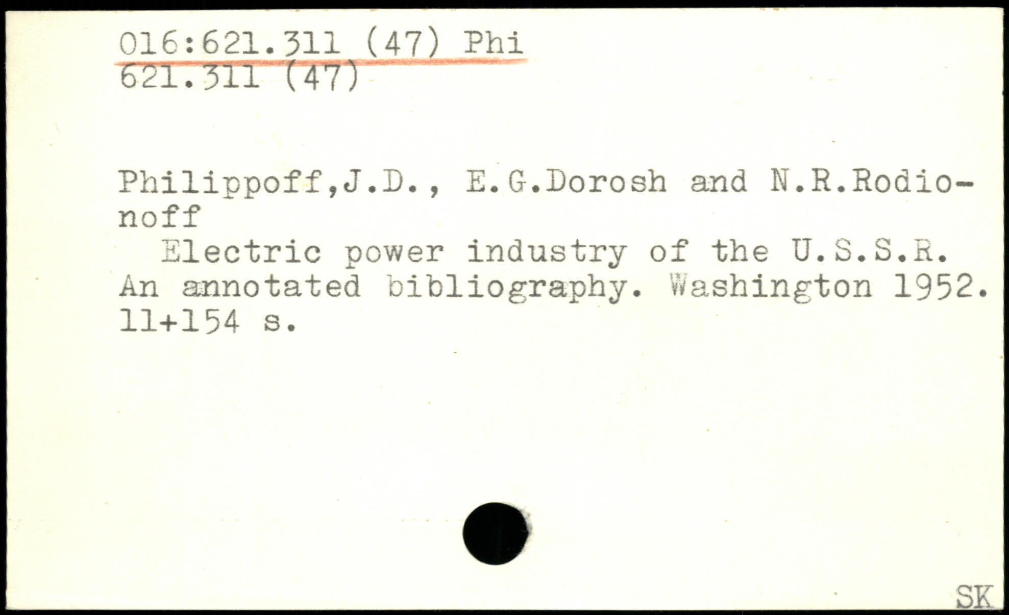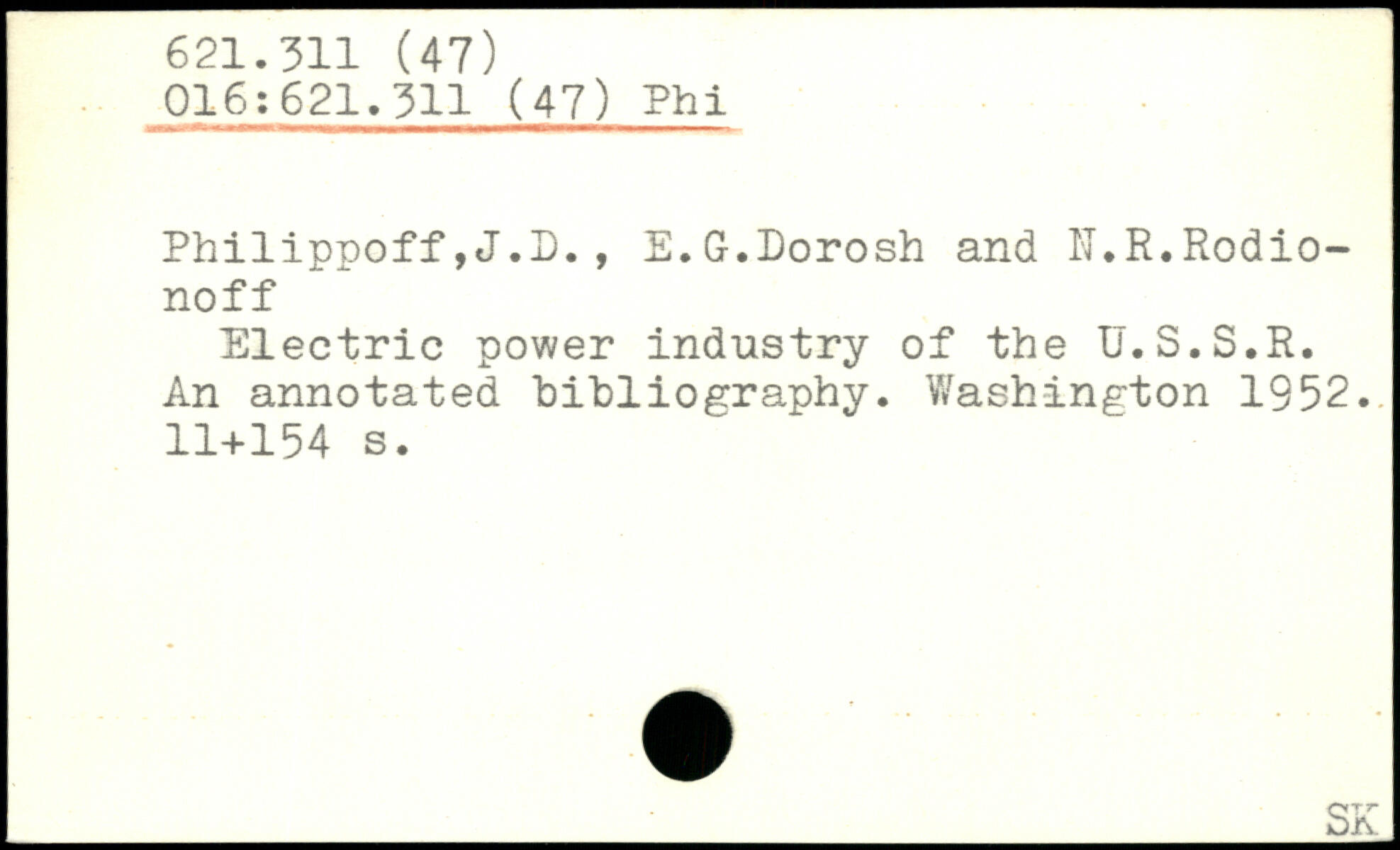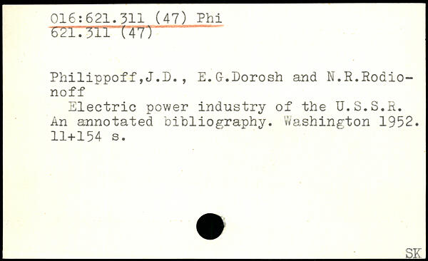 Philippoff,J.D., E.G.Dorosh and N.R.Rodio-nof f Electric power industry of the U.S.S.R. An annotated bibliography.
