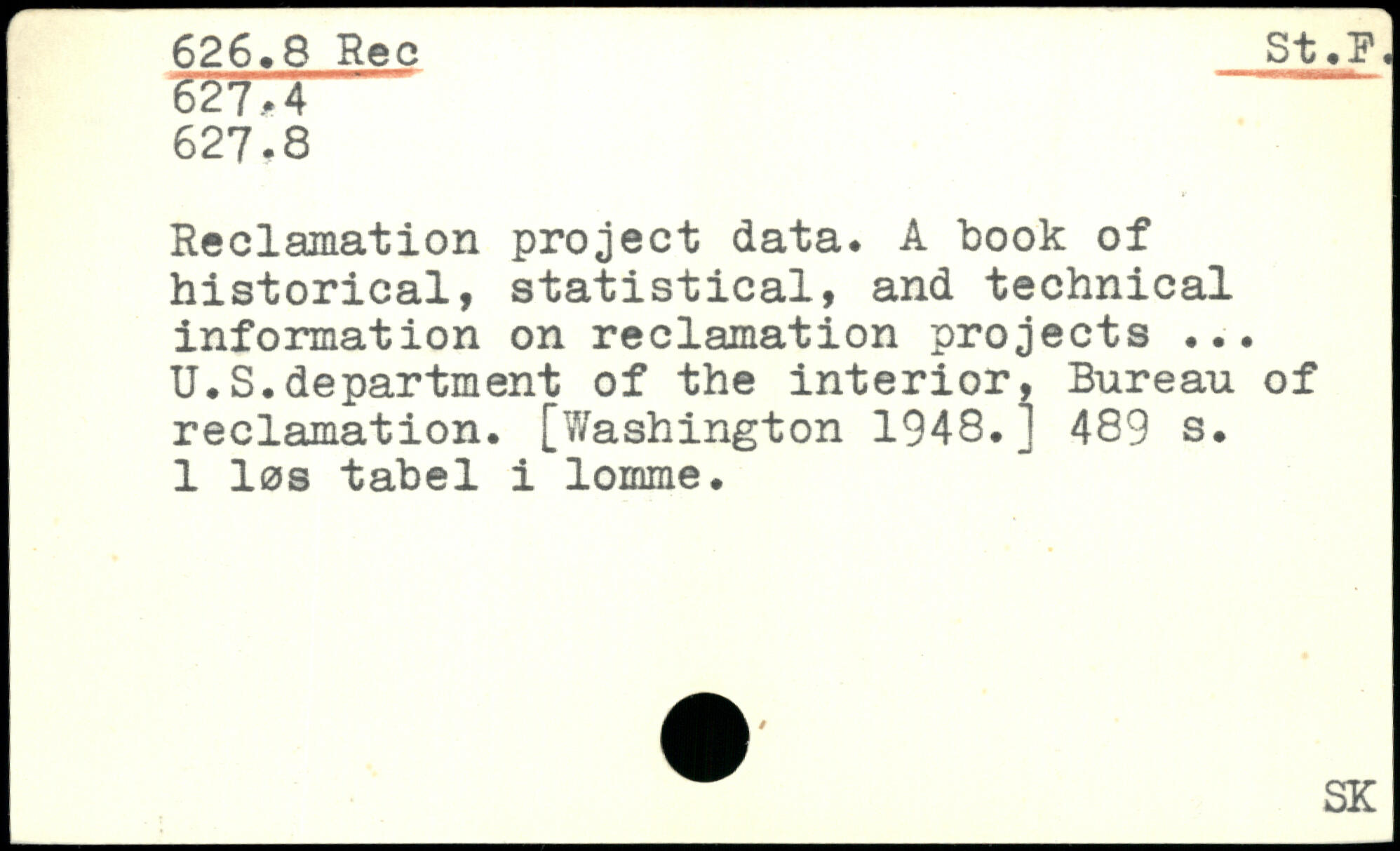 Reclamation project data. A book of historical, statistical, and technical information on reclamation projects ... U.S.department of the interior, Bureau of reclamation.