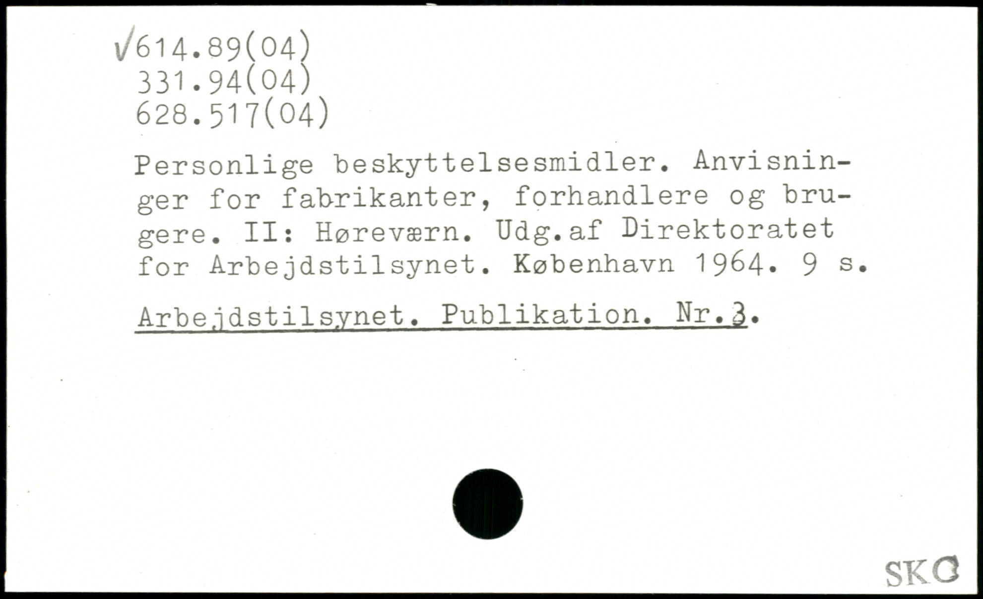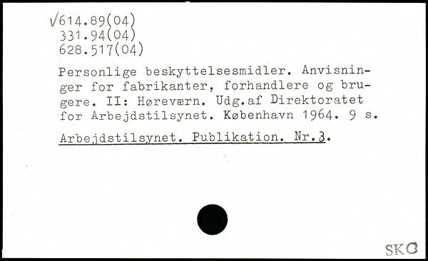Personlige beskyttelsesmidler. Anvisninger for fabrikanter, forhandlere og brugere. II: Høreværn. Udg.af Direktoratet for Arbejdstilsynet. København 19^4-