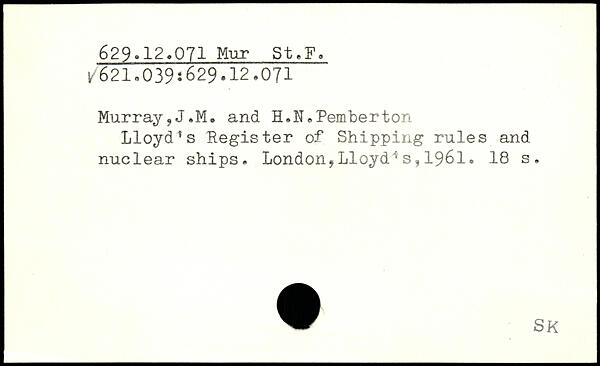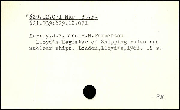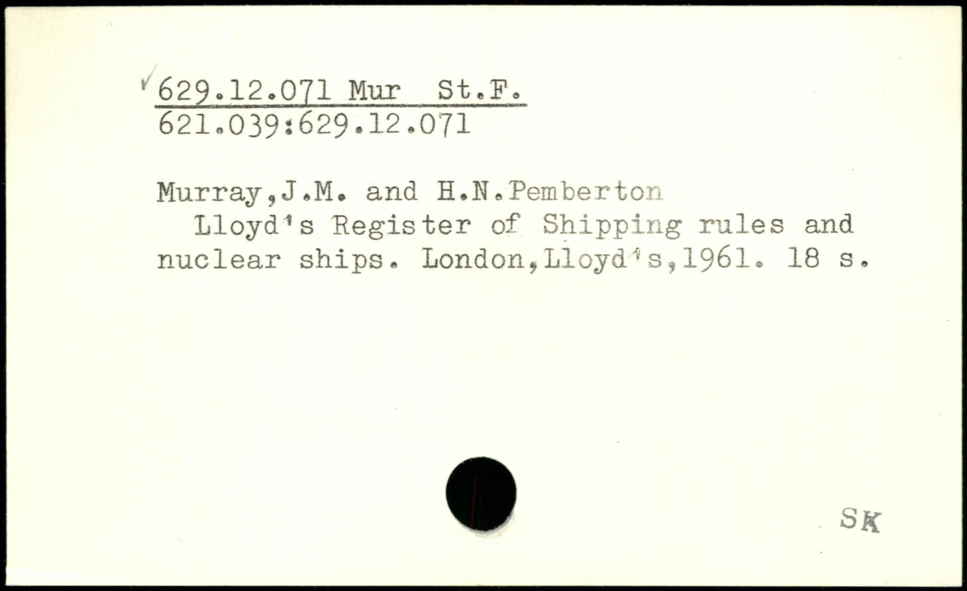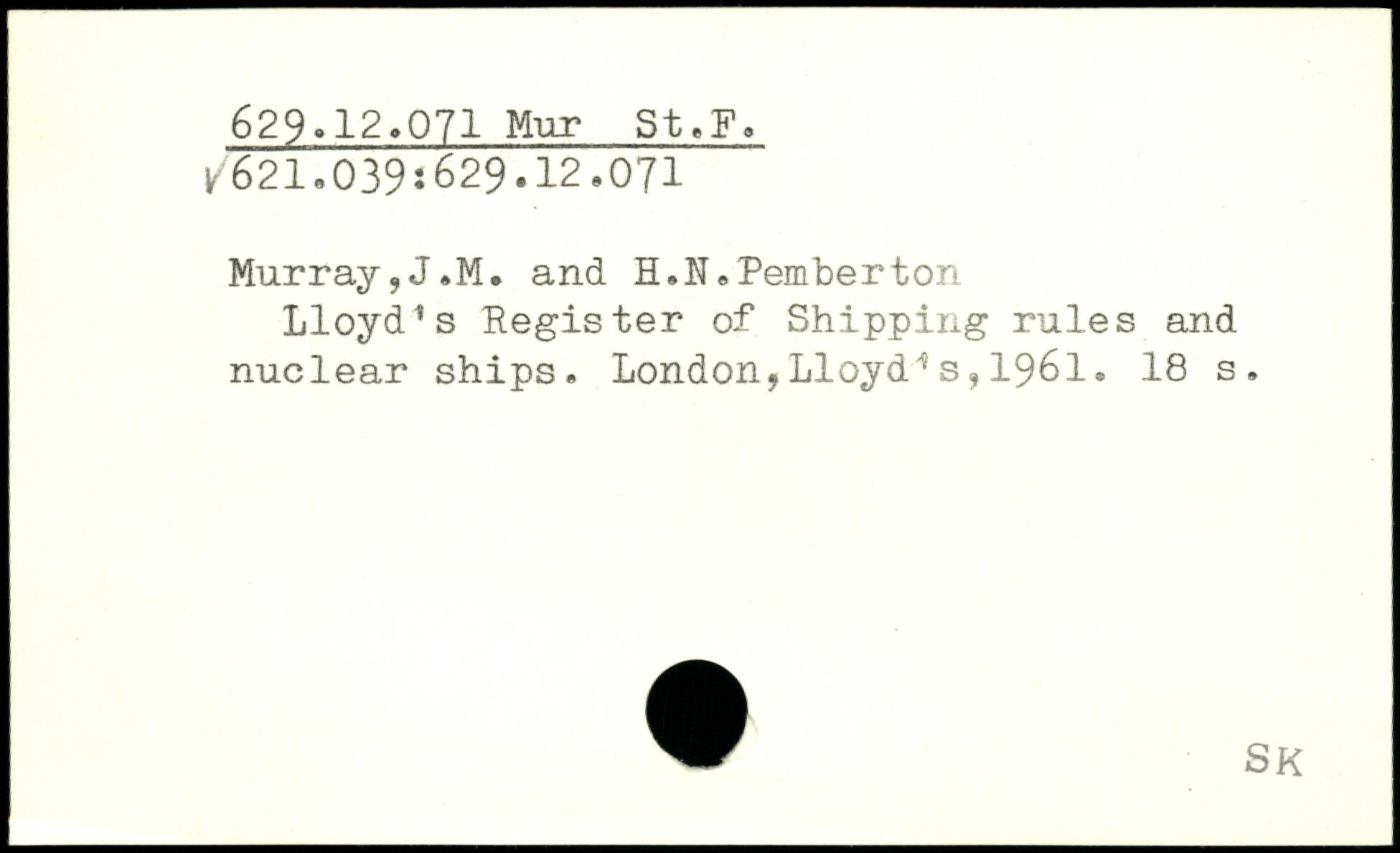 Lloyd1s Register of Shipping rules and nuclear ships. London,Lloyd^s,1961.